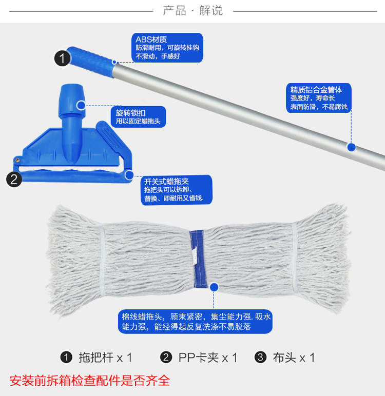 超宝 C-014 铝合金杆蜡拖 物业工厂车间扣式标准地拖 清洁蜡拖