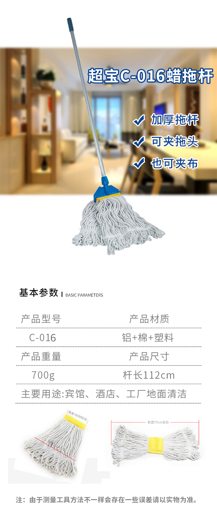 超宝 C-016 蜡拖酒店物业吸水拖布棉拖把拧水拖把 豪华型扣式地拖