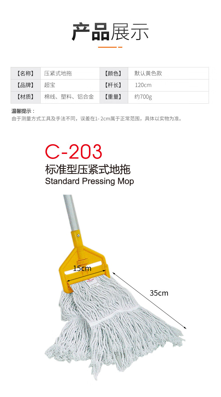 超宝 C-203 酒店物业工厂吸水拖布棉拖把拧水拖把 标准型压紧式地拖