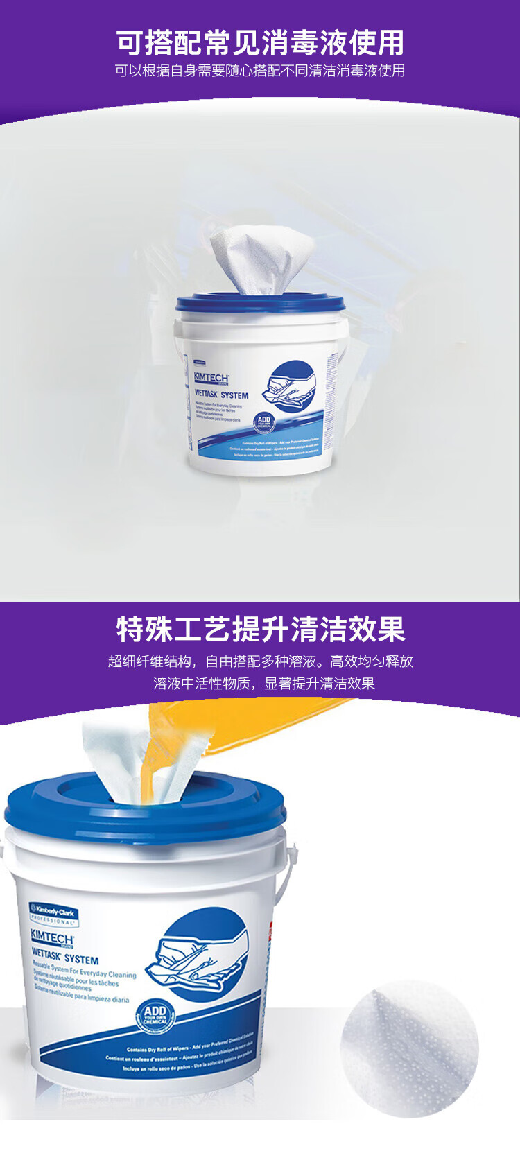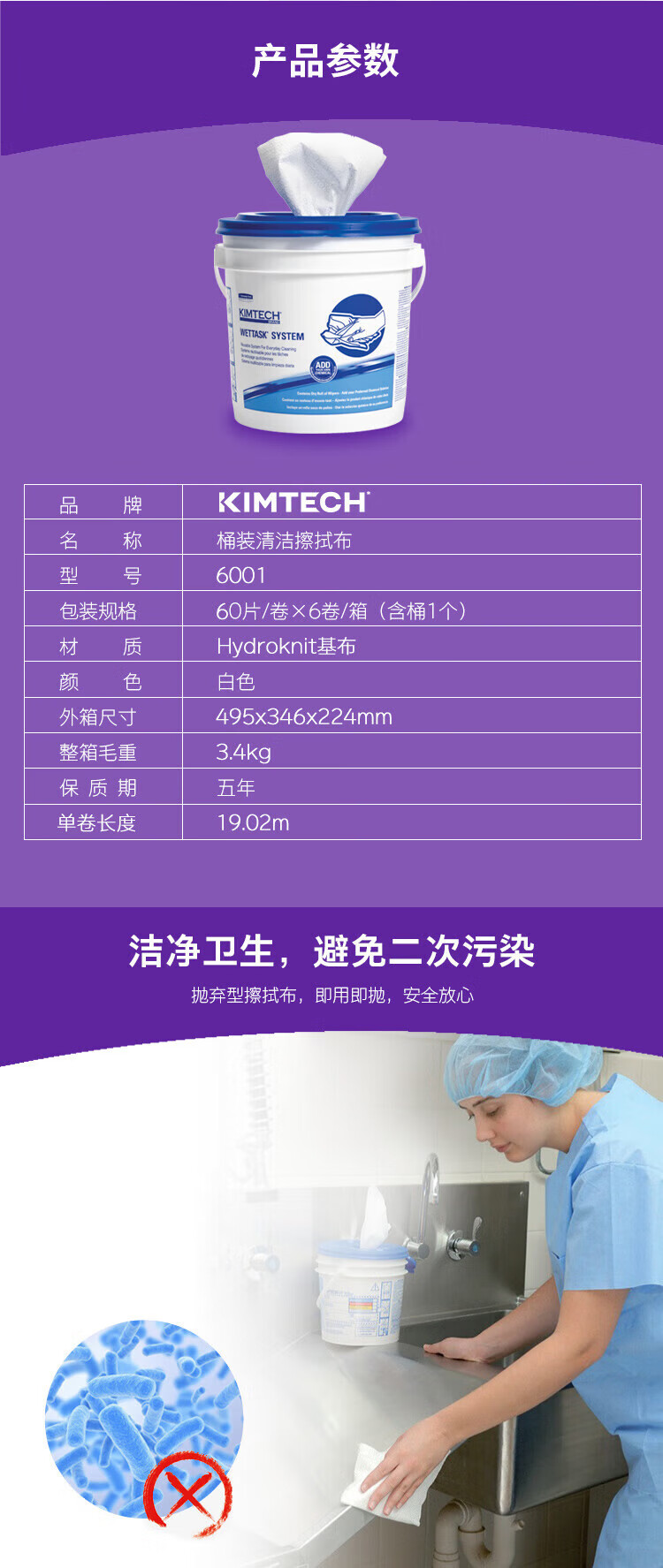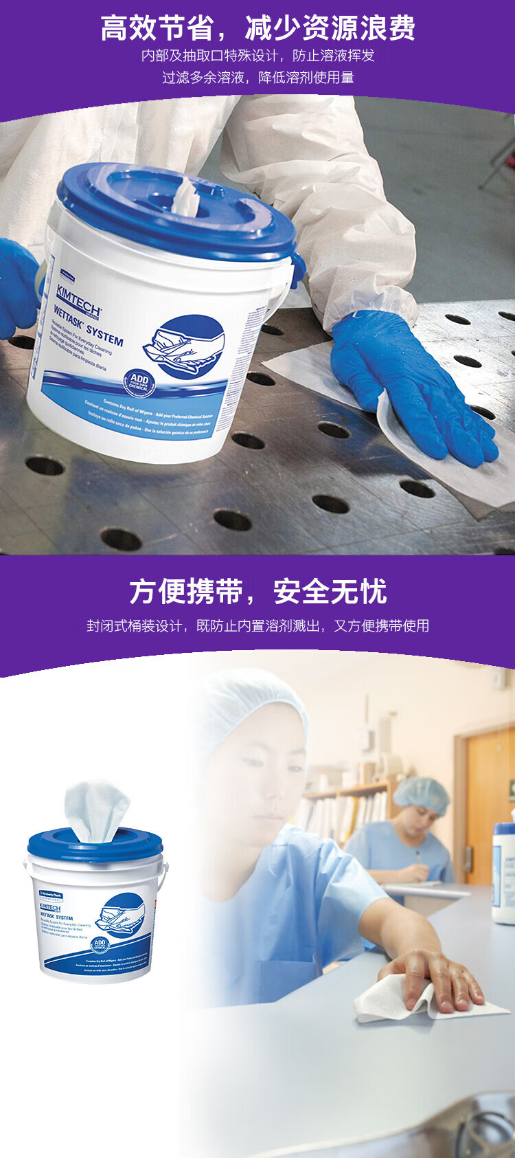 金特(Kimtech )小蓝桶浸润型清洁擦拭布桶装式 6卷/箱(含1个桶)6001