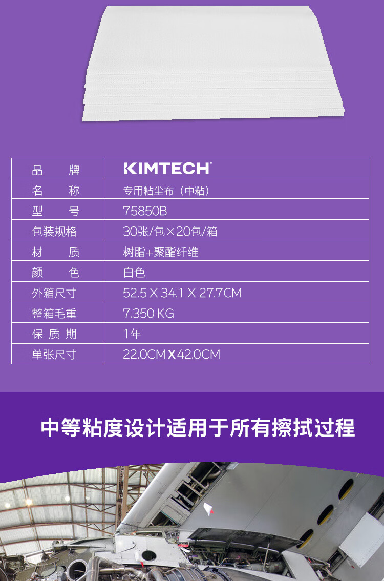 金特(Kimtech)金佰利专业粘尘布涂装车间工厂擦拭布 22cm*42cm 中粘 30张/包 20包/箱 75850B
