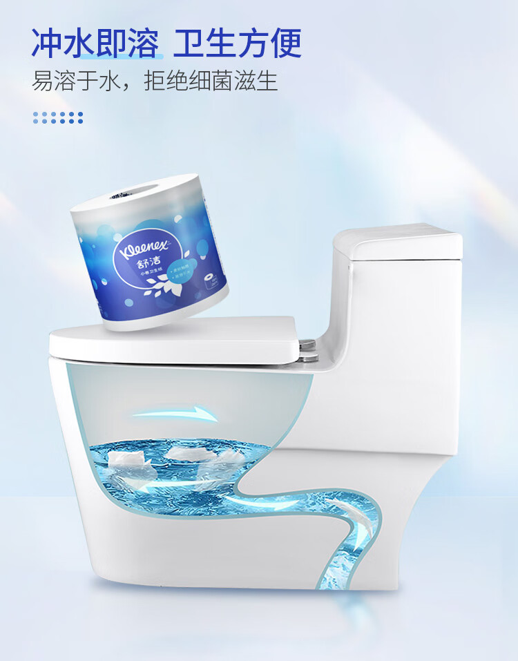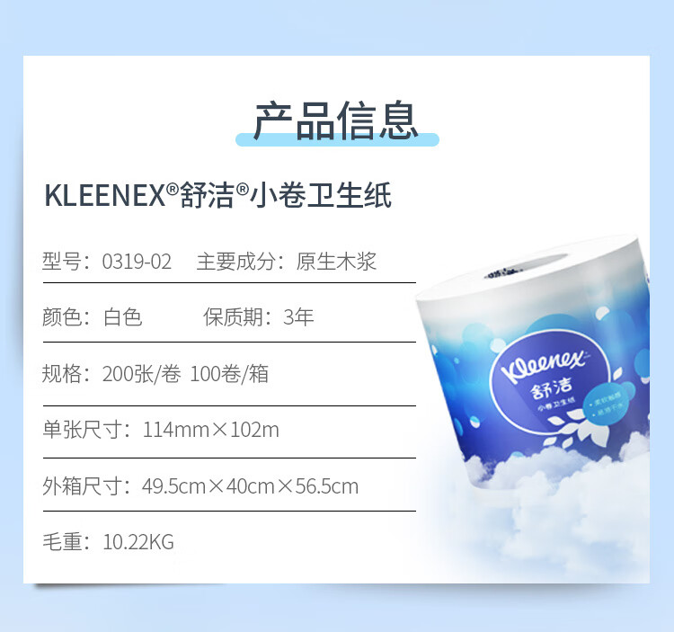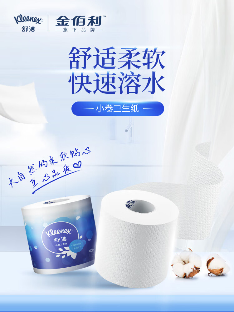 舒洁(Kleenex)金佰利双层小卷卫生纸卫生间用原生木浆不堵塞座便器擦手纸200格/卷*100卷/箱 0319