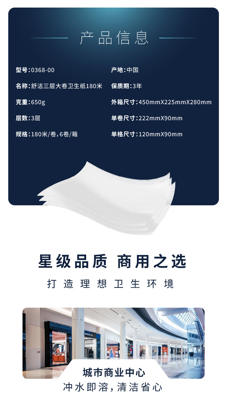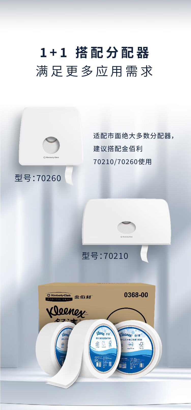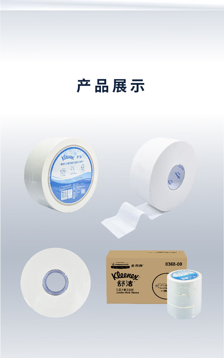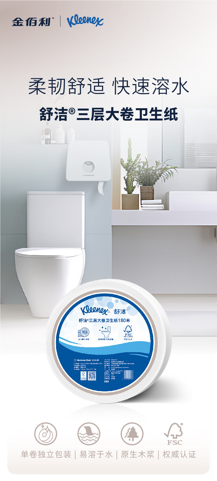 舒洁(Kleenex)金佰利三层大卷卫生纸酒店宾馆洗手间商用擦手纸180米(割线)6卷/箱 0368
