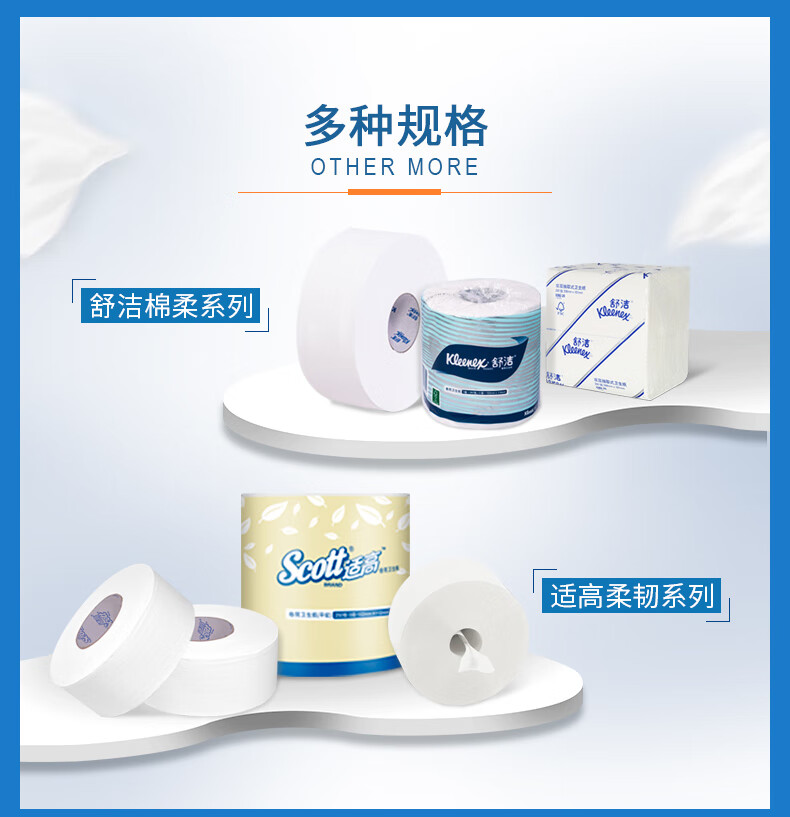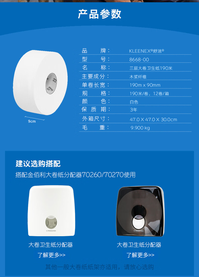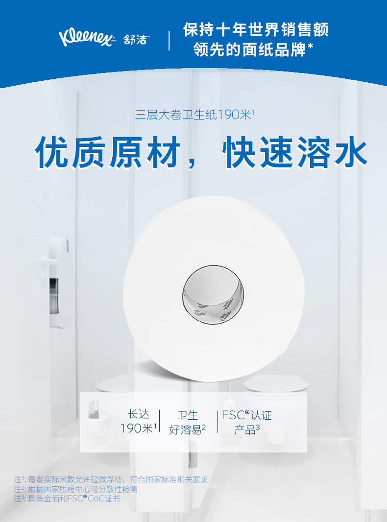 舒洁(Kleenex)金佰利三层大卷擦手纸洗手间厕纸大卷纸酒店商场商用卫生纸 190米/卷 x 12卷 8668-00