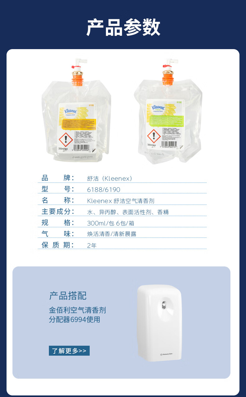 舒洁(Kleenex)金佰利空气清香剂工厂用可定时花香型香氛喷雾 300ml/包 6包/箱 6188
