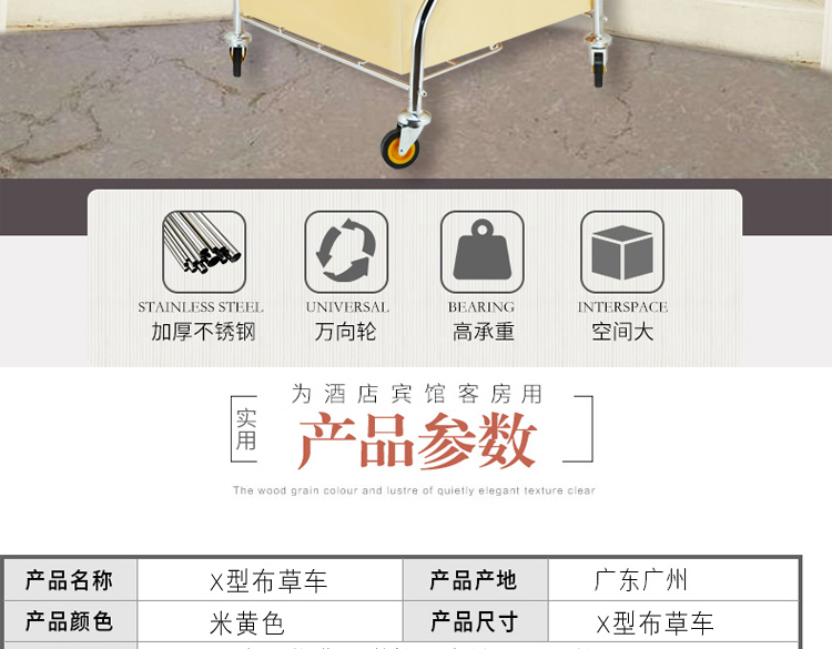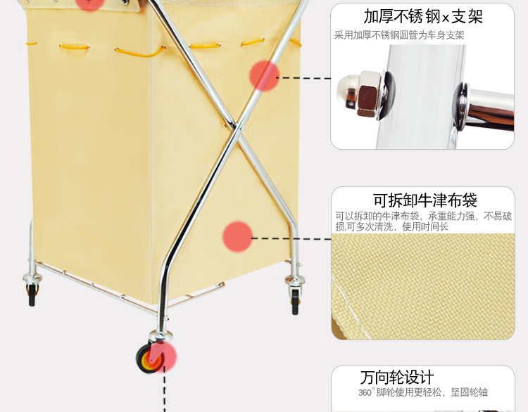 超宝 D-027 不锈钢x型布草车 酒店宾馆收集车