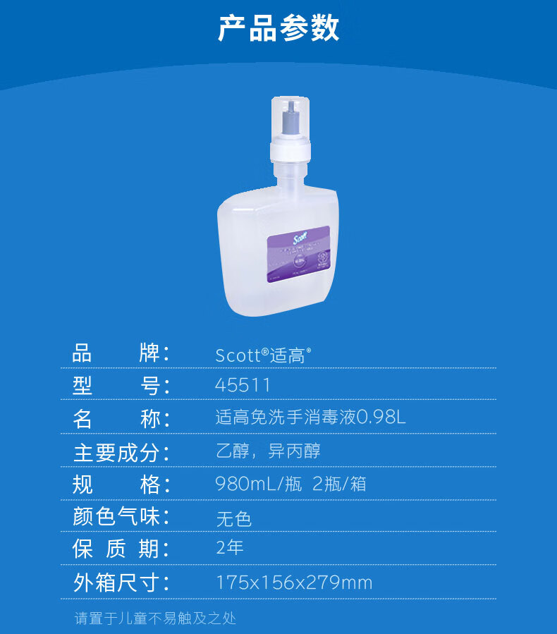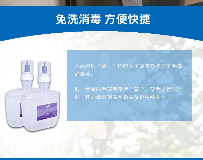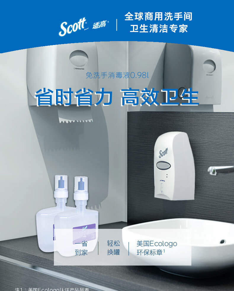 适高(Scott)金佰利洗手液免洗泡沫工业手消液按压约1600次 1.2L/瓶×2瓶/箱 45511(可搭配分配器92147)