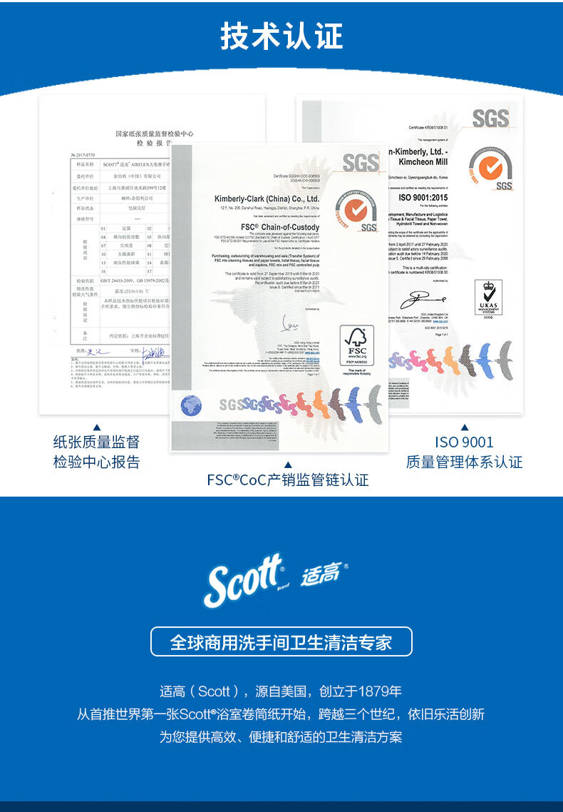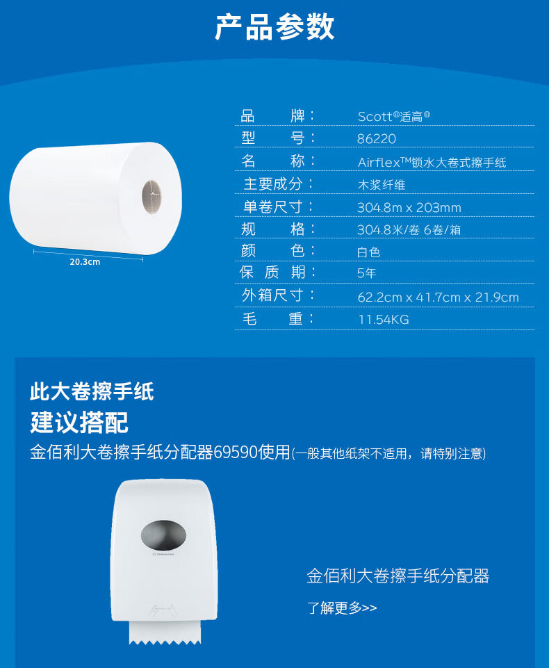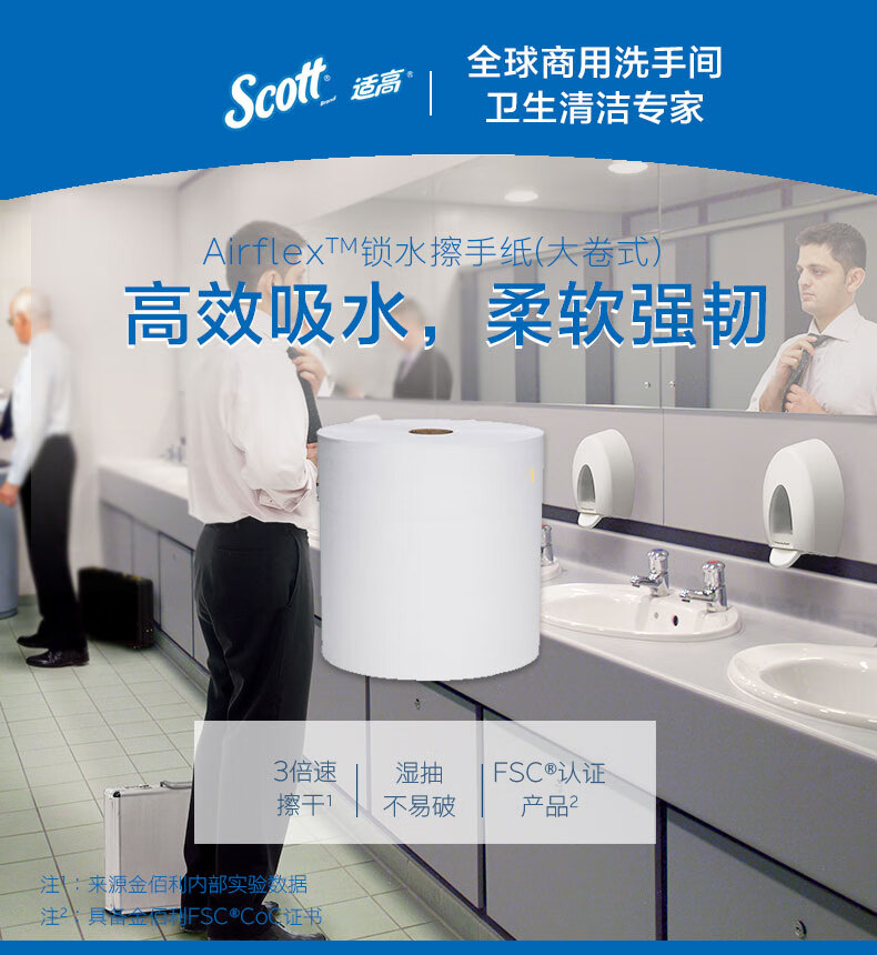 适高(Scott)金佰利大卷擦手纸卫生间吸水卷纸不易卫生纸 304.8米/卷 6卷/箱 86220