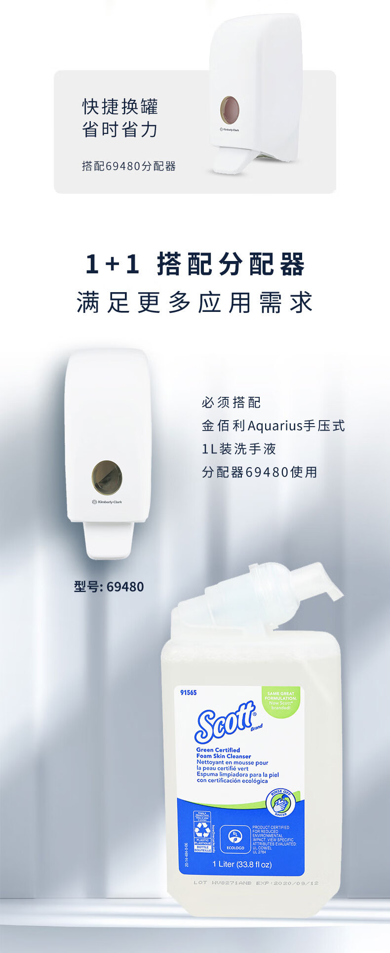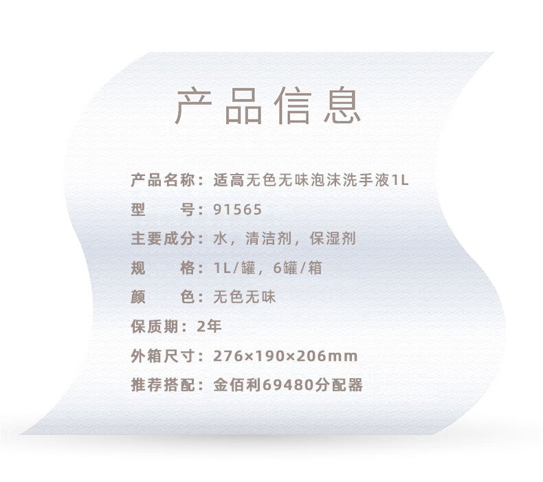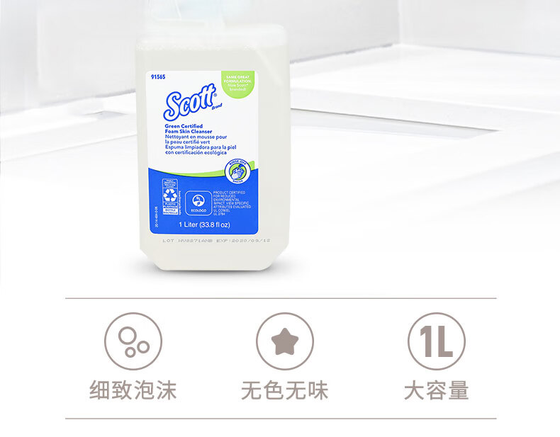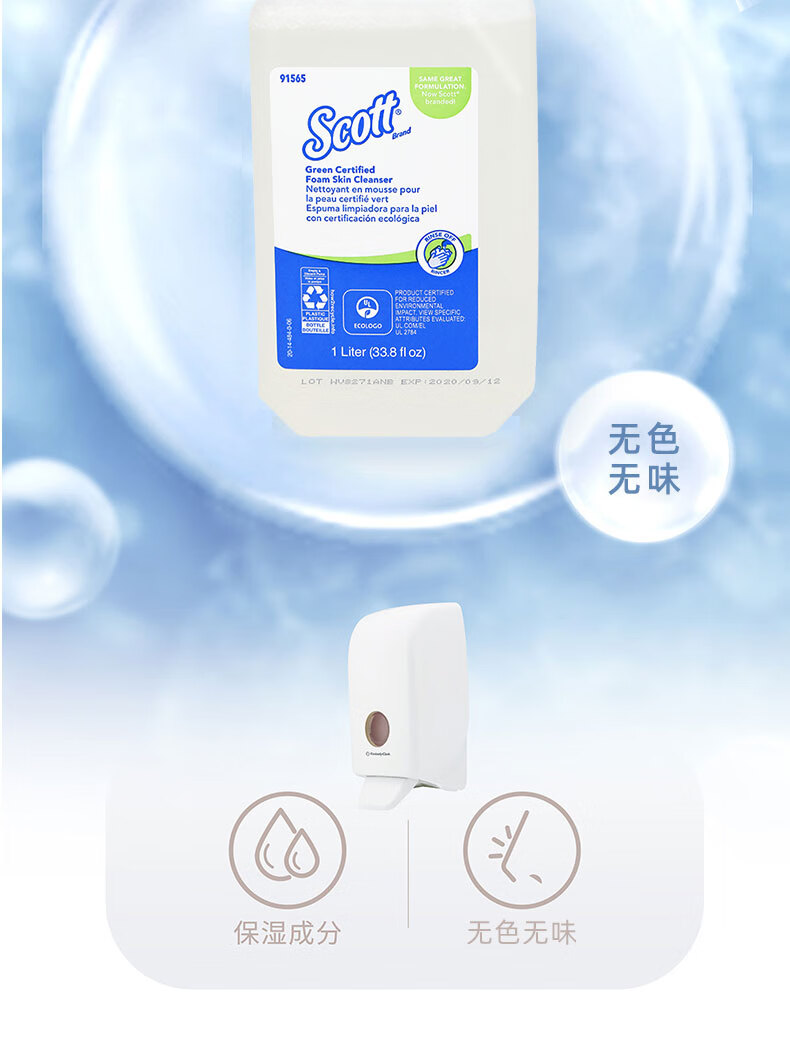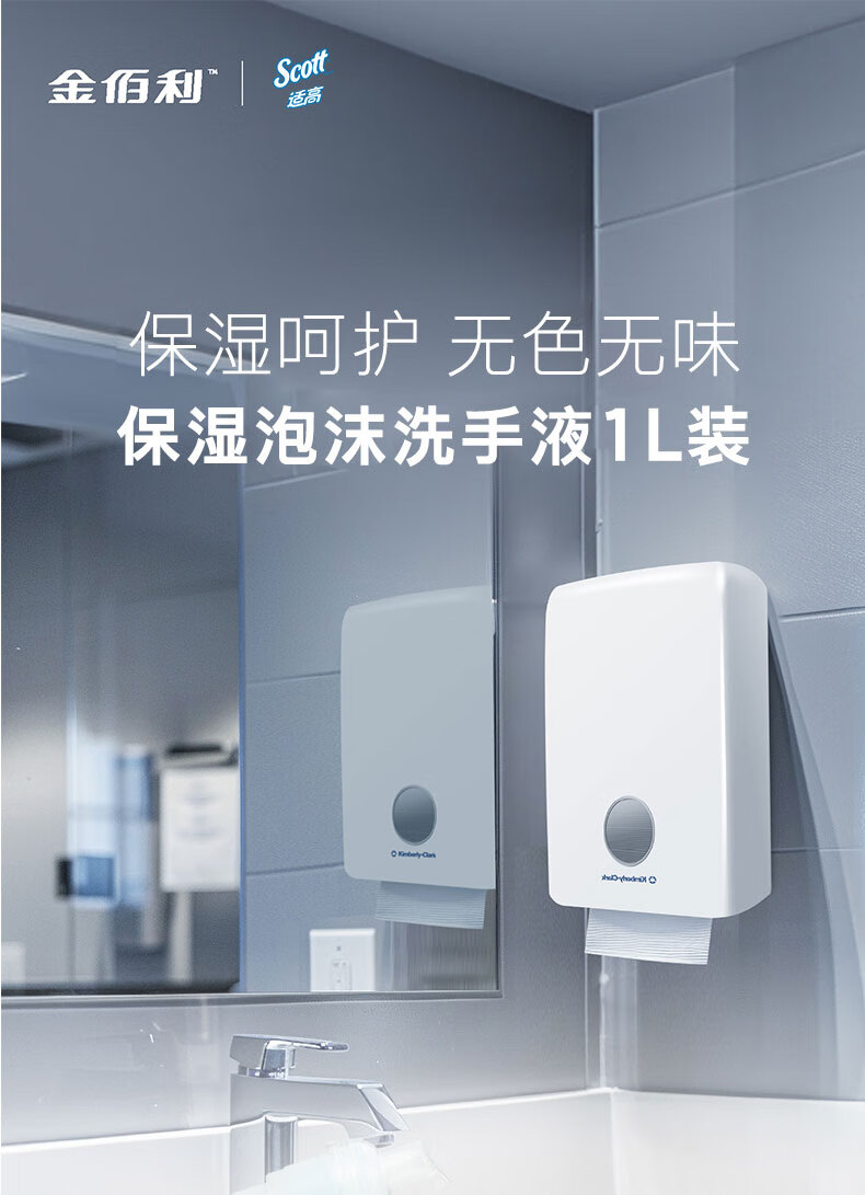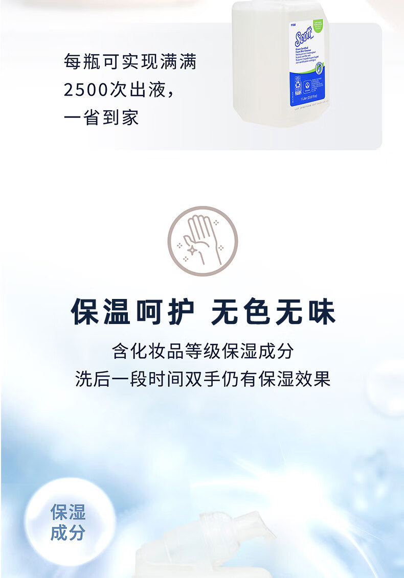 适高(Scott)金佰利泡沫洗手液无色无味酒店商用卫生间用无香型洗手液 1升/罐 6罐/箱 1箱装 91565