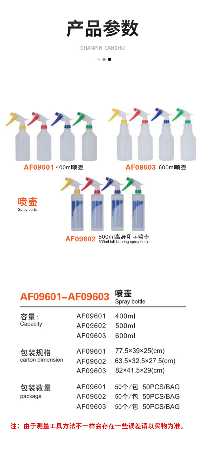 白云清洁 AF09601 塑料喷壶园艺浇花洒水壶喷雾瓶稀释瓶 400ML颜色随机