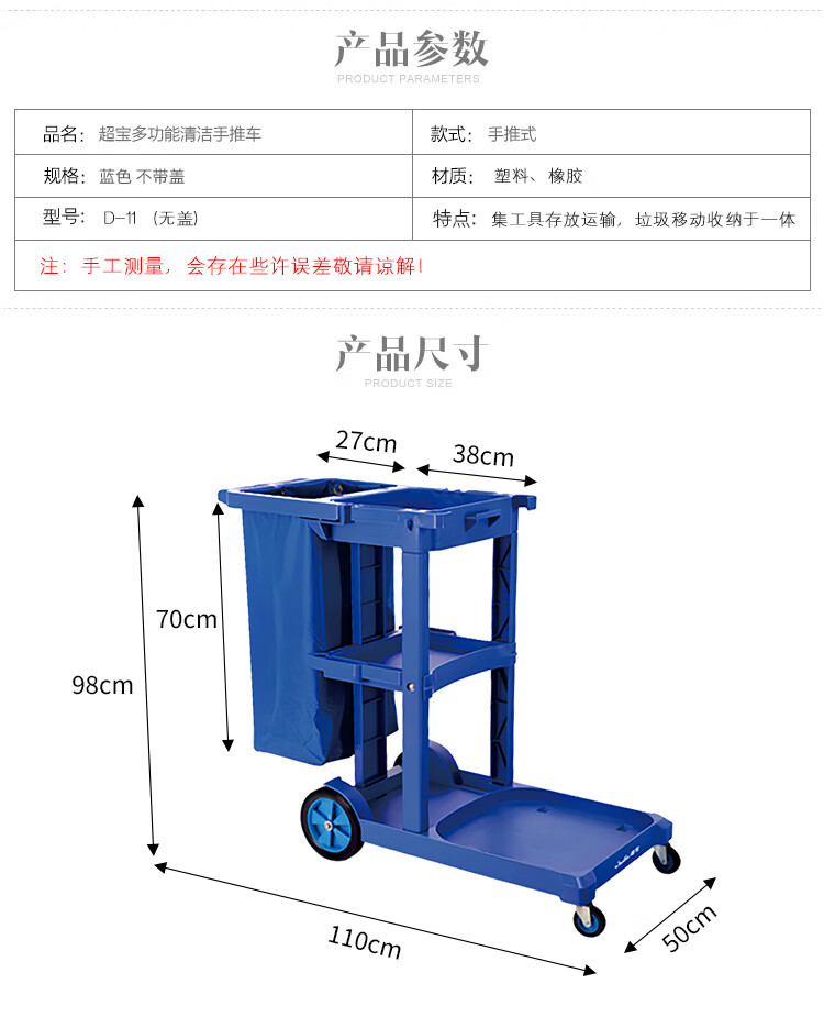 超宝 D-11 多用途清洁手推车 不带盖 蓝色 1台