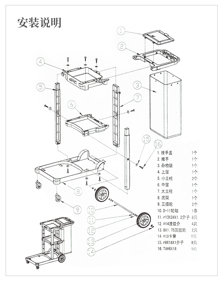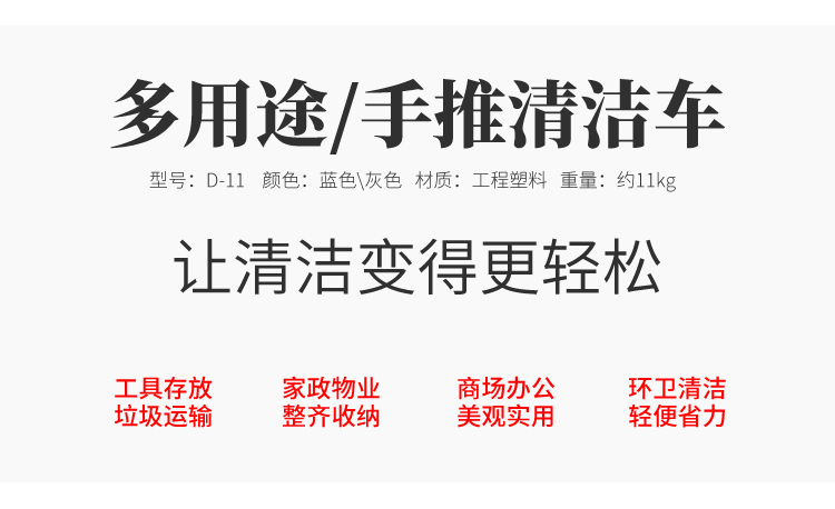 超宝 D-11-1 清洁推车酒店宾馆医院保洁车布草车工具车 带盖灰色