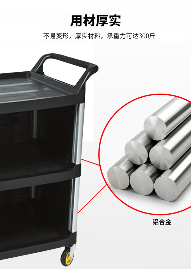 超宝 D-012B 三层手推车塑料餐车餐盘收集车清洁车 大号不带门