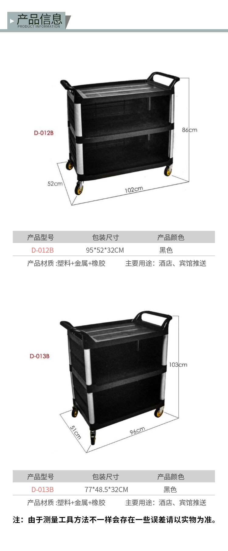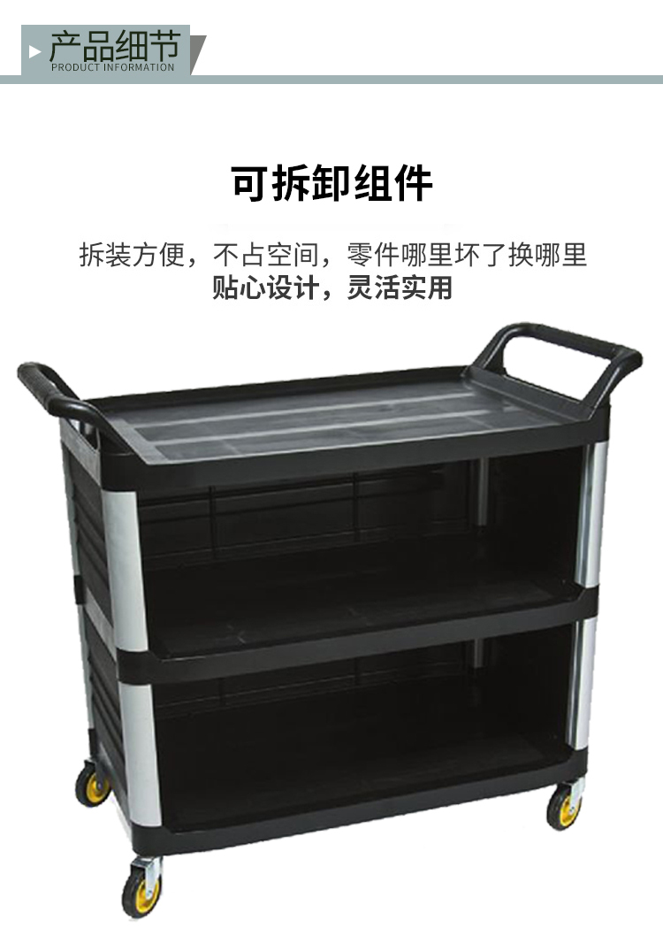超宝 D-013B 三层手推车塑料餐车餐盘收集车清洁车 小号不带门
