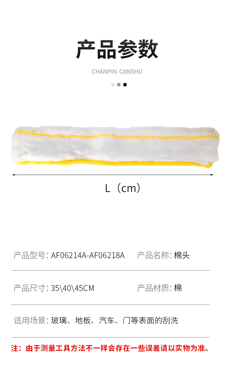 白云清洁 AF06214A 毛头清洁工具擦玻璃替换布加厚涂水器抹水器 替换布35CM