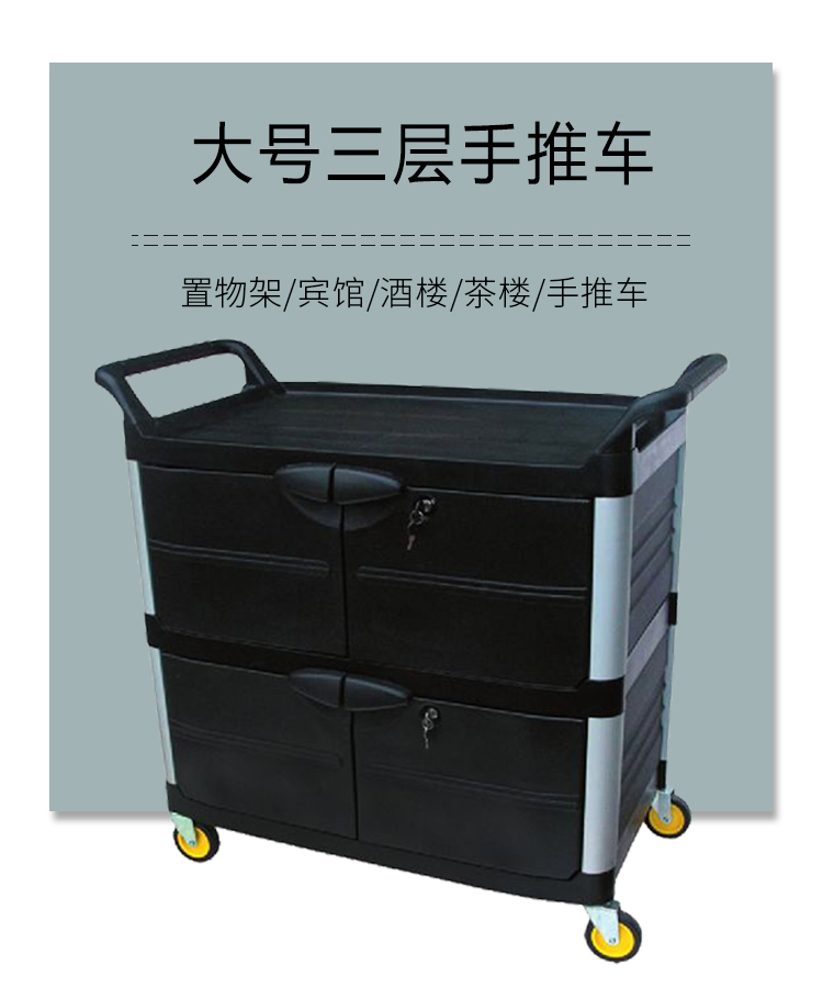 超宝 D-013A 三层手推车塑料餐车餐盘收集车清洁车 小号带门
