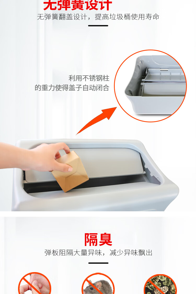 超宝 B-036C 免手动垃圾桶升级大容量储水桶垃圾桶 灰色 80L