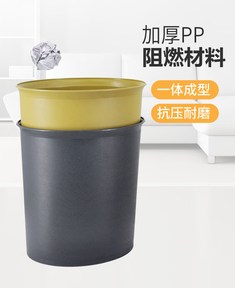 超宝 B-236A 酒店宾馆阻燃小号垃圾桶 8L阻燃椭圆灰色 5个装