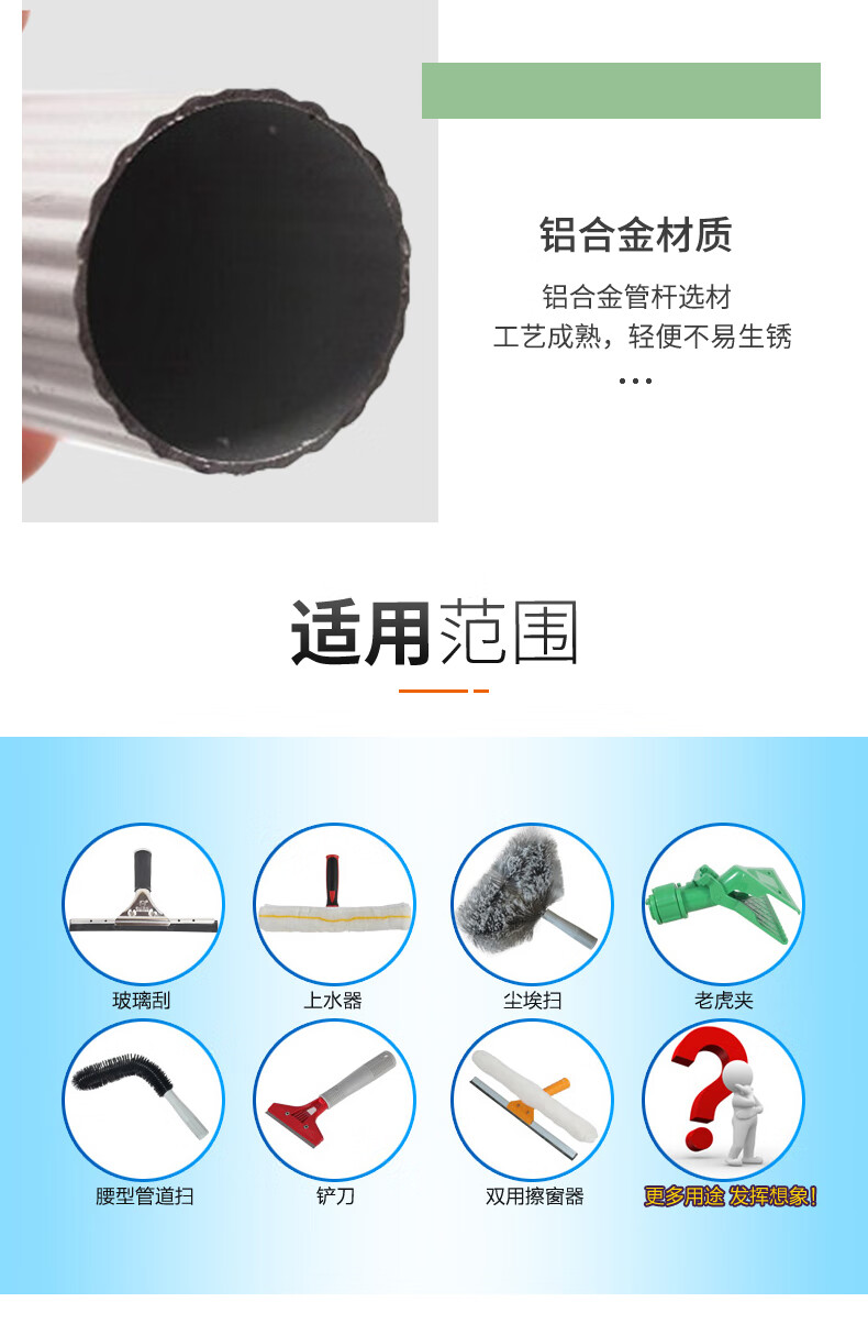 白云清洁(baiyun cleaning)AF05003 铝合金伸缩杆 玻璃清洁配件杆 双节2.4米