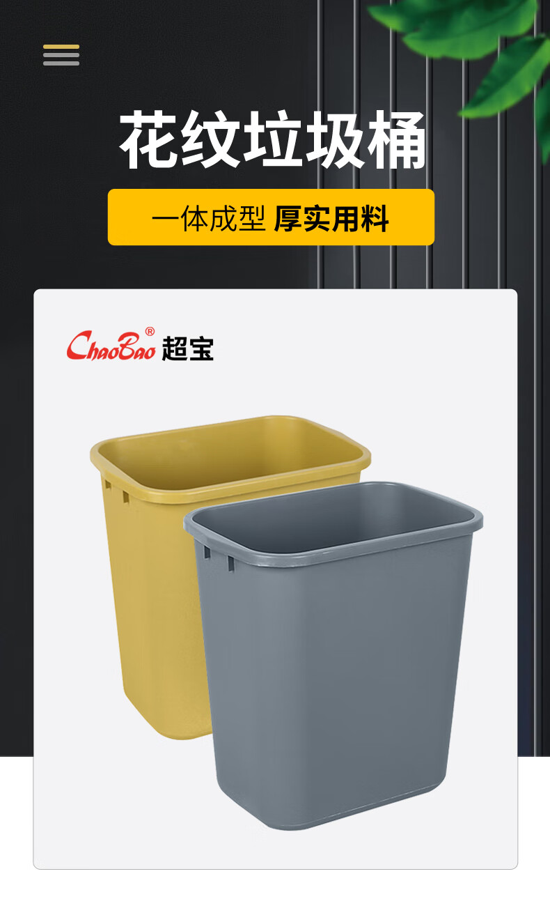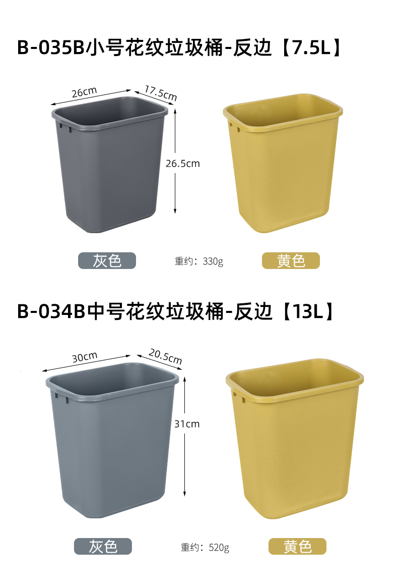 超宝 B-034B 反边方形垃圾桶酒店客房卫生间垃圾纸篓 13L颜色随机