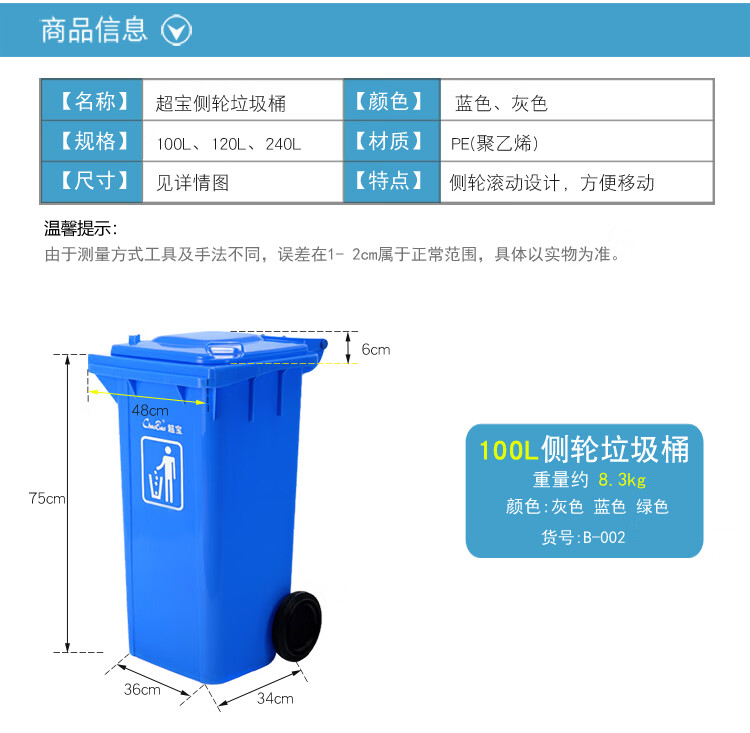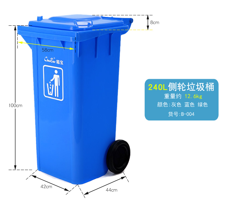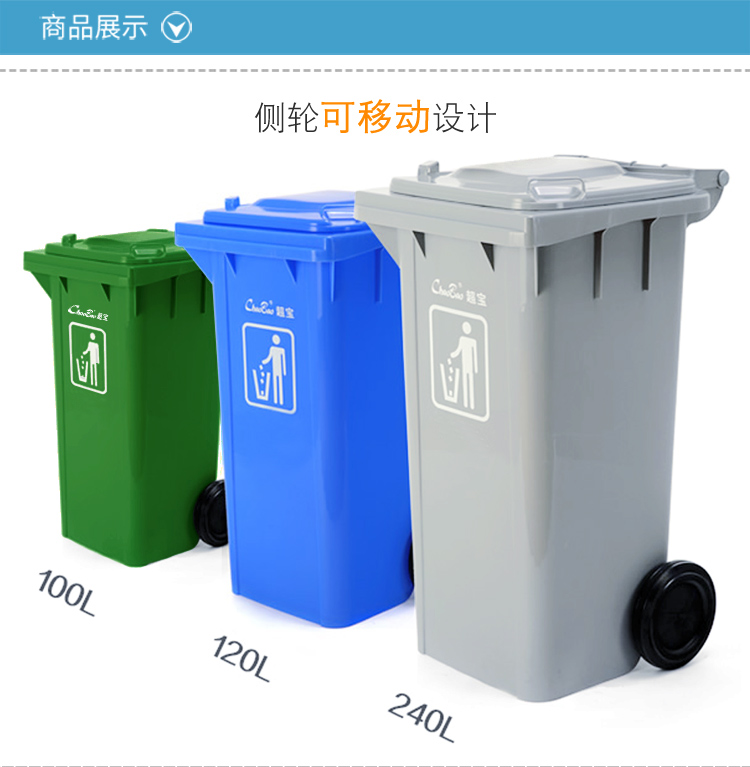 超宝 B-002 环卫酒店物业大号带盖垃圾桶 100L绿色