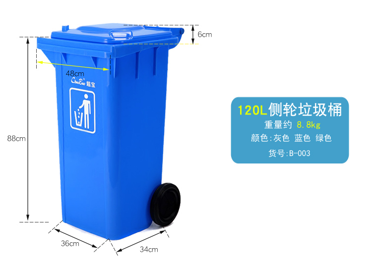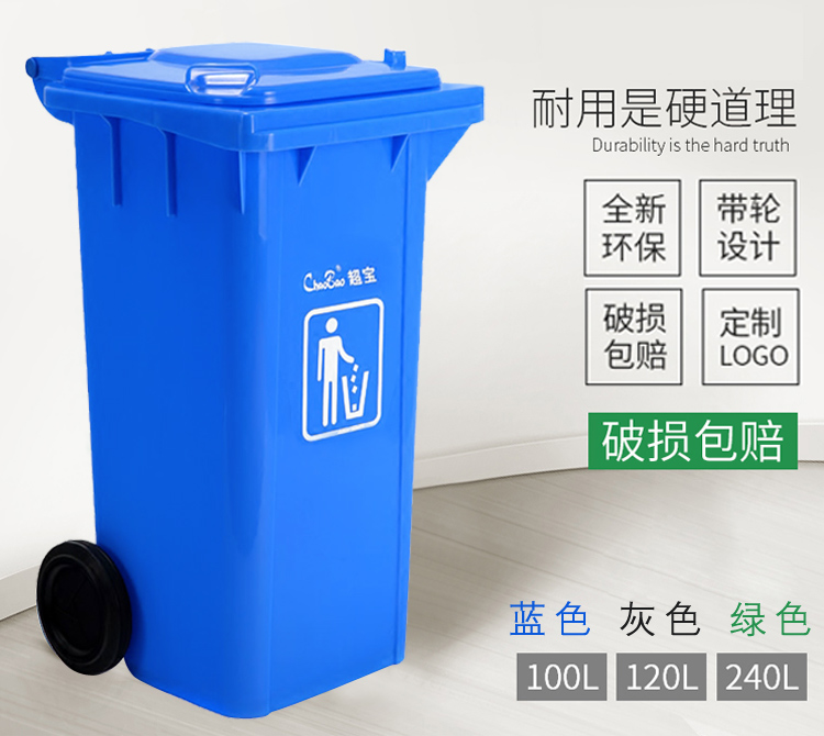 超宝 B-002 环卫酒店物业用大号带盖垃圾桶 100L蓝色