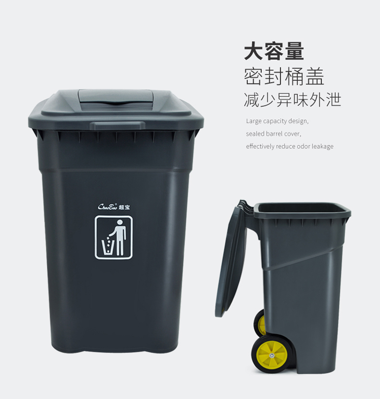 超宝 B-011B-1 大号加厚垃圾桶 户外桶酒店物业环卫带盖垃圾桶 120L黑色普通款