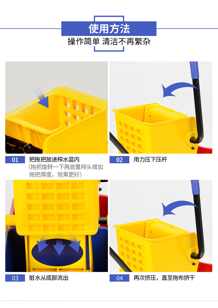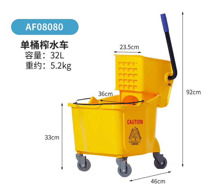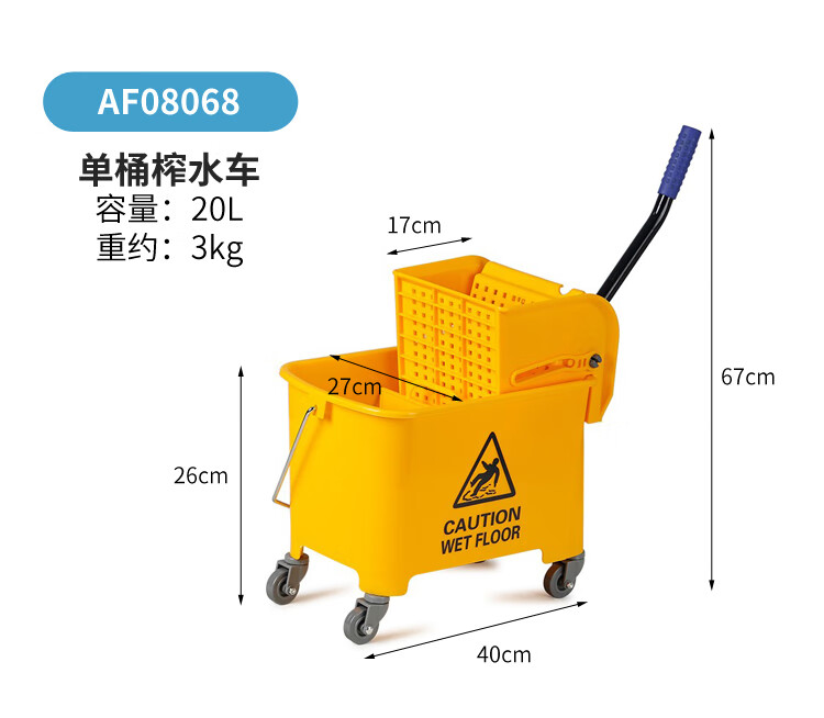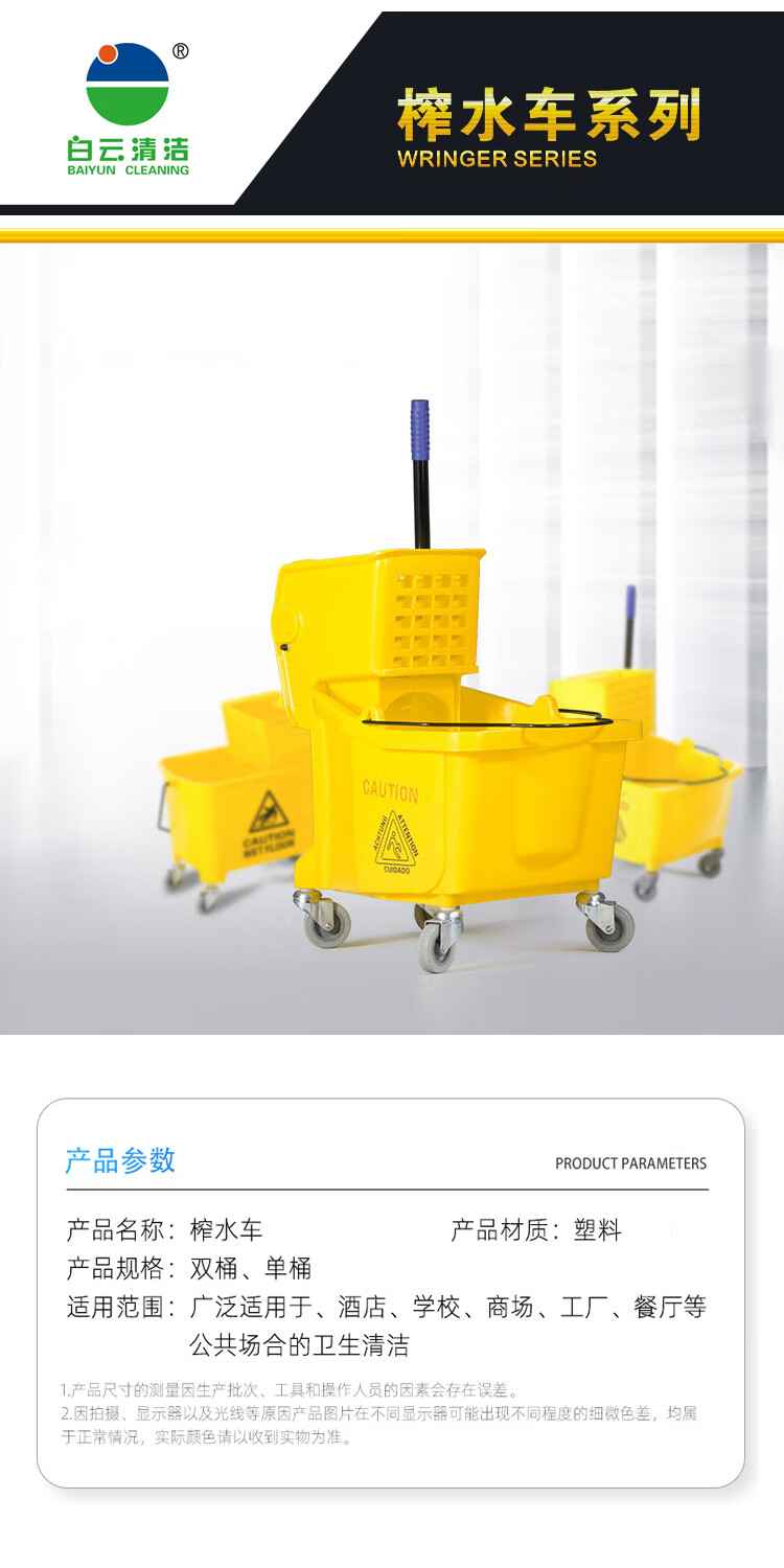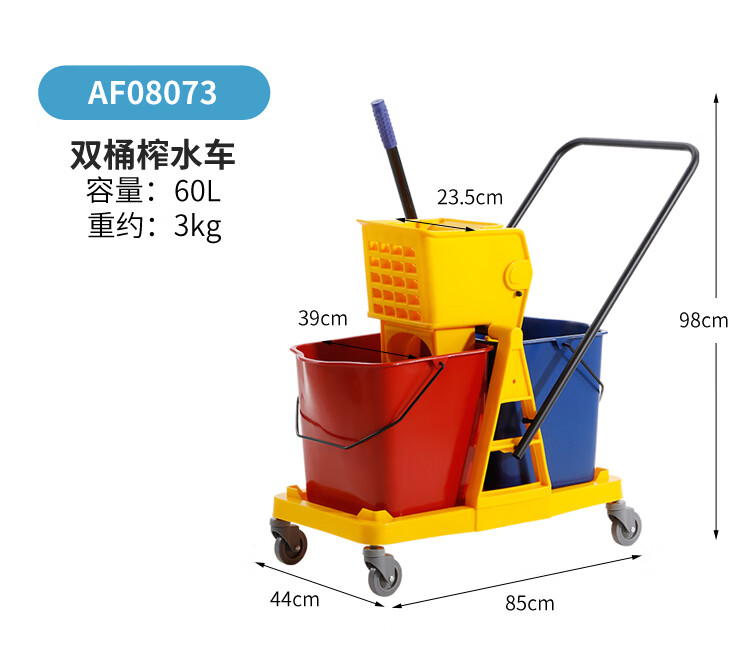 白云清洁(baiyun cleaning)AF08071 加大榨水车双桶 60L 不锈钢保护架