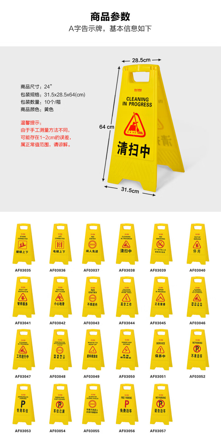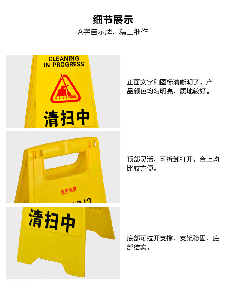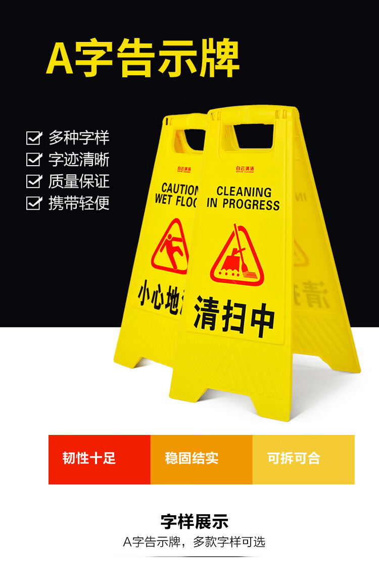 白云清洁(baiyun cleaning)AF03038 A字告示牌 酒店商场车站人字形塑料指示牌标识牌 清扫中