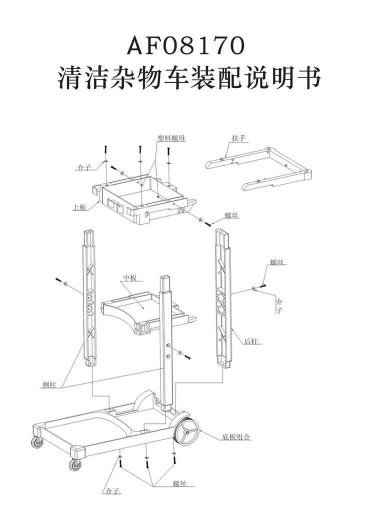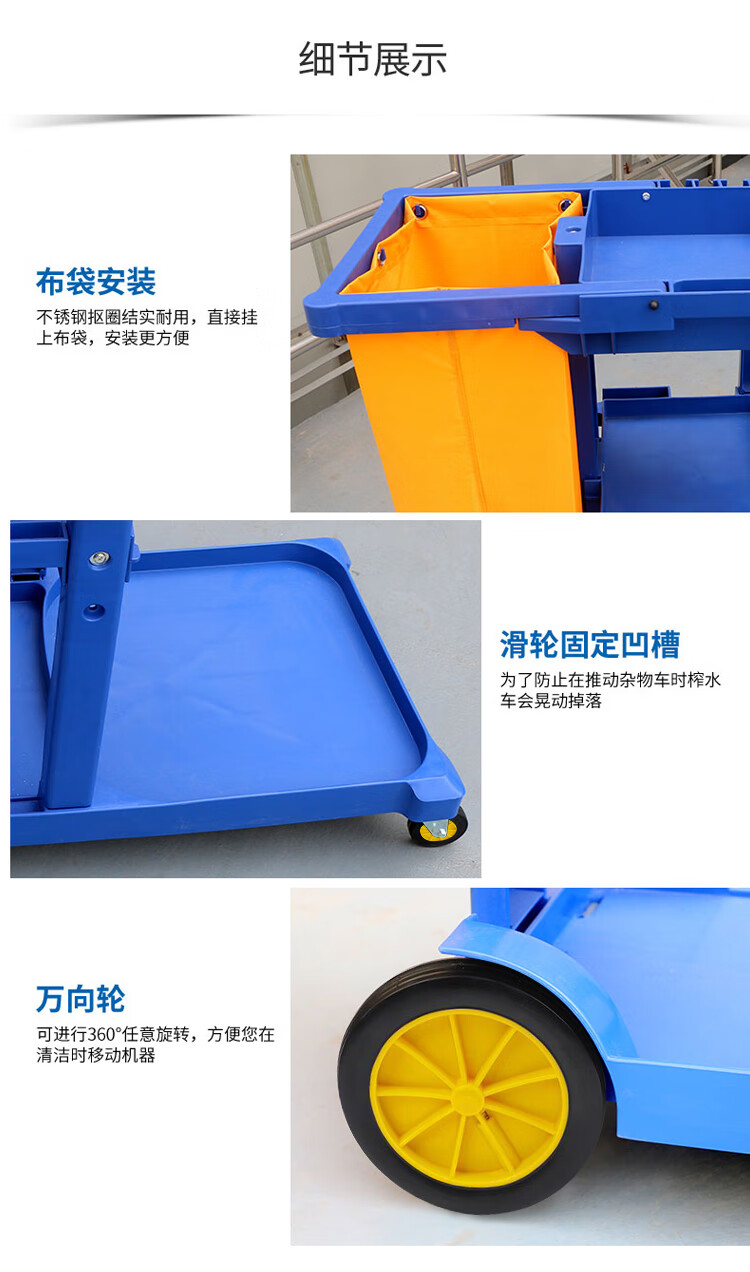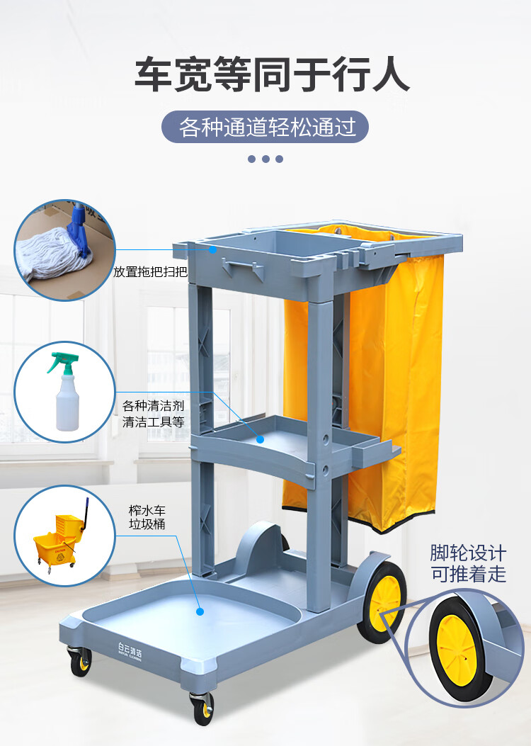 白云清洁(baiyun cleaning)AF08170A 多用途清洁杂物车 物业酒店清洁手推车 灰色带盖