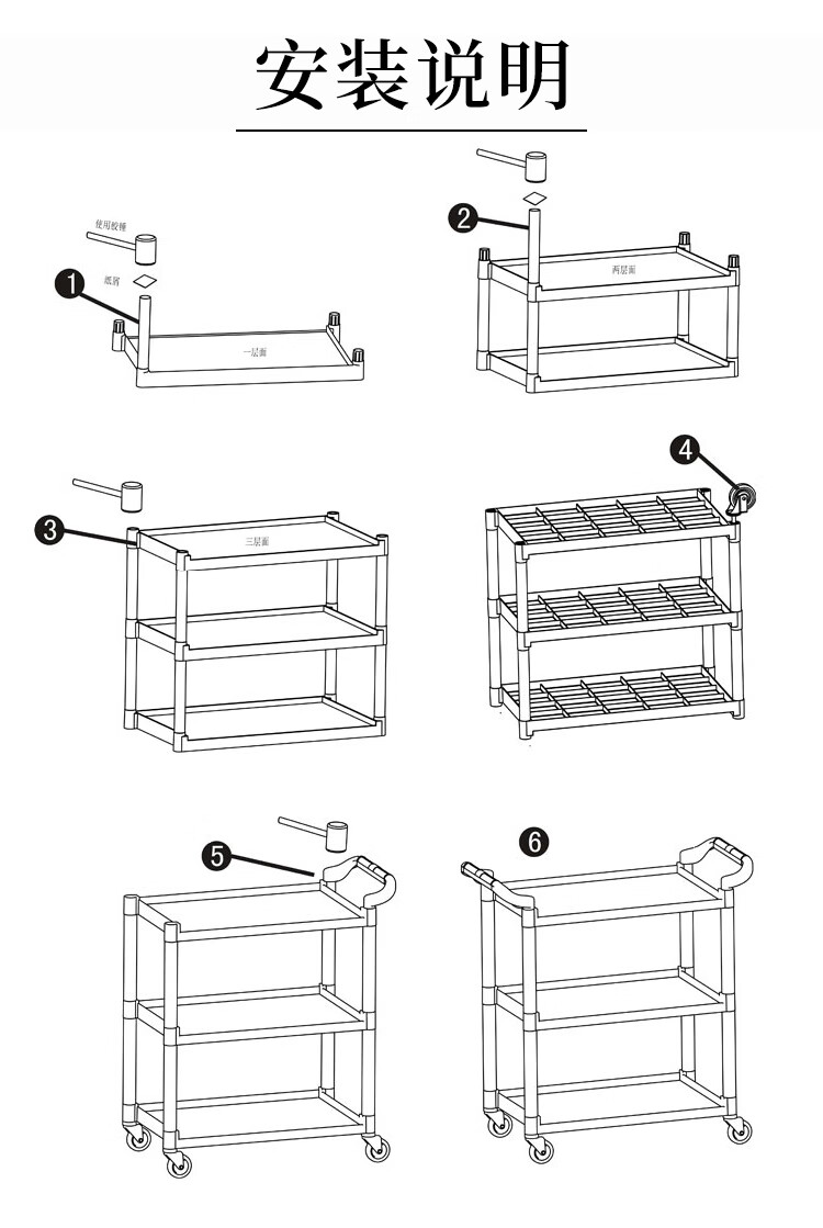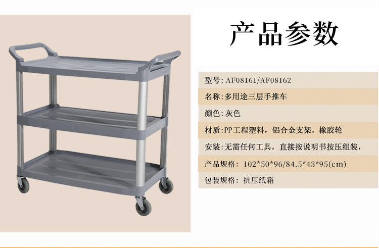 白云清洁 AF08162 酒店手推车清洁车收餐车小号多功能三层推车