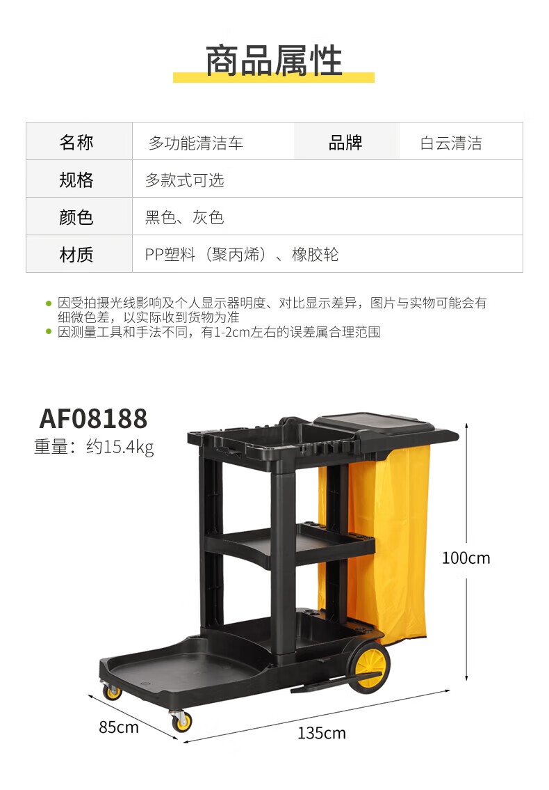 白云清洁 AF08189 酒店客房多功能手推车布草车保洁工作车清洁车服务车 134*85*100CM