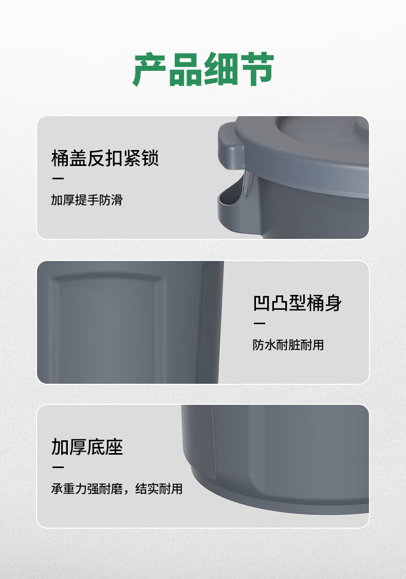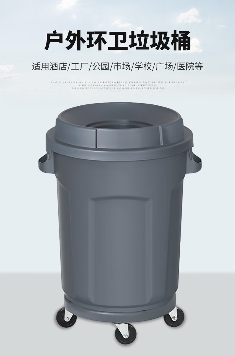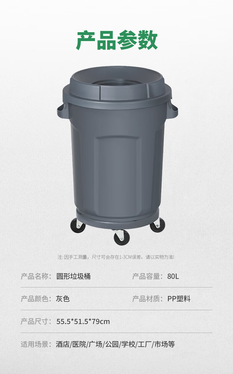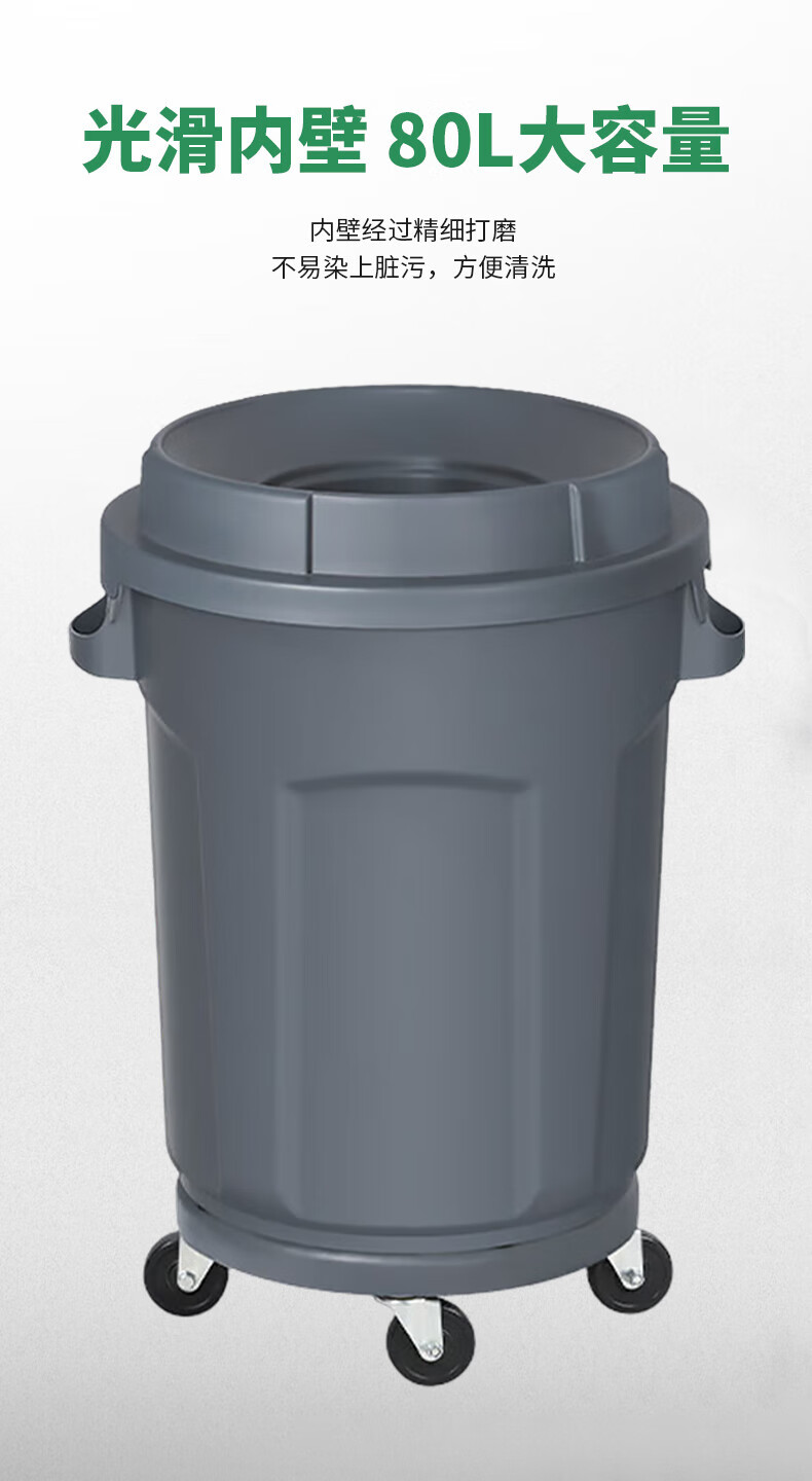 白云清洁 圆形垃圾桶 AF07584 灰色 80L 四轮底座 1个