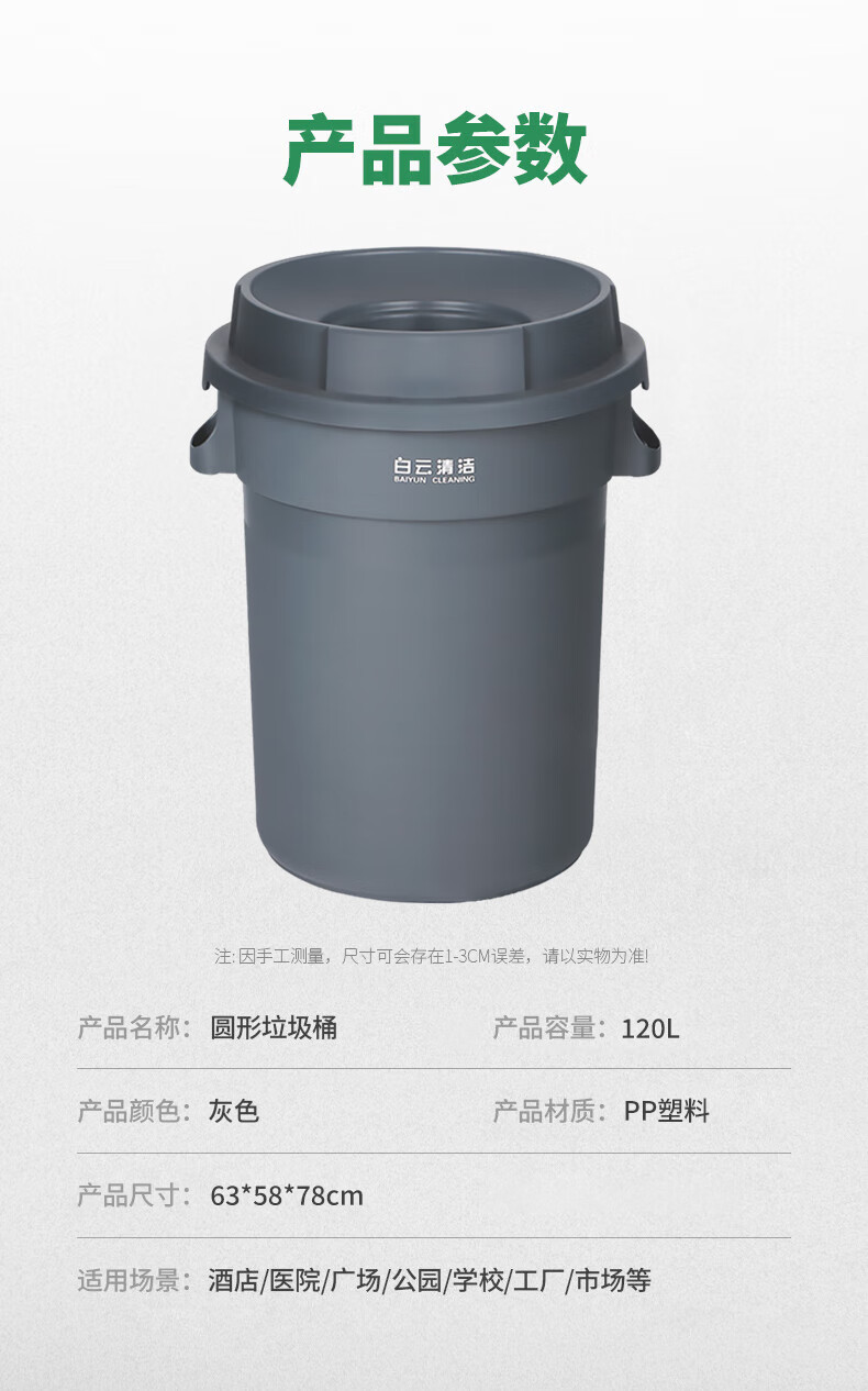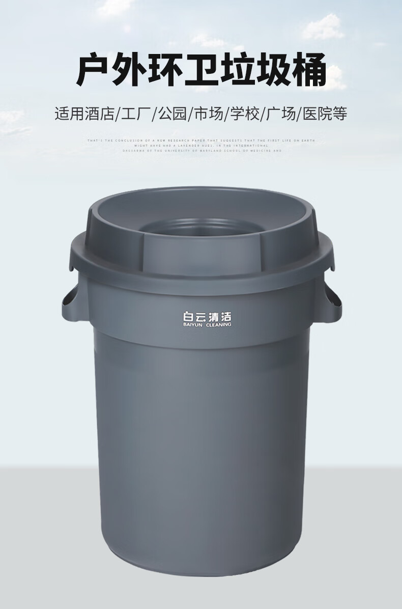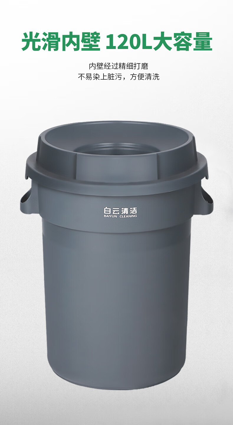 白云清洁 圆形垃圾桶 AF07511 灰色 120L 1个