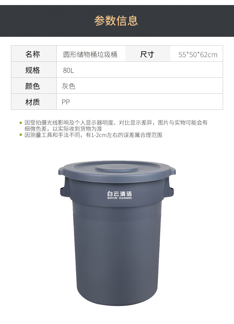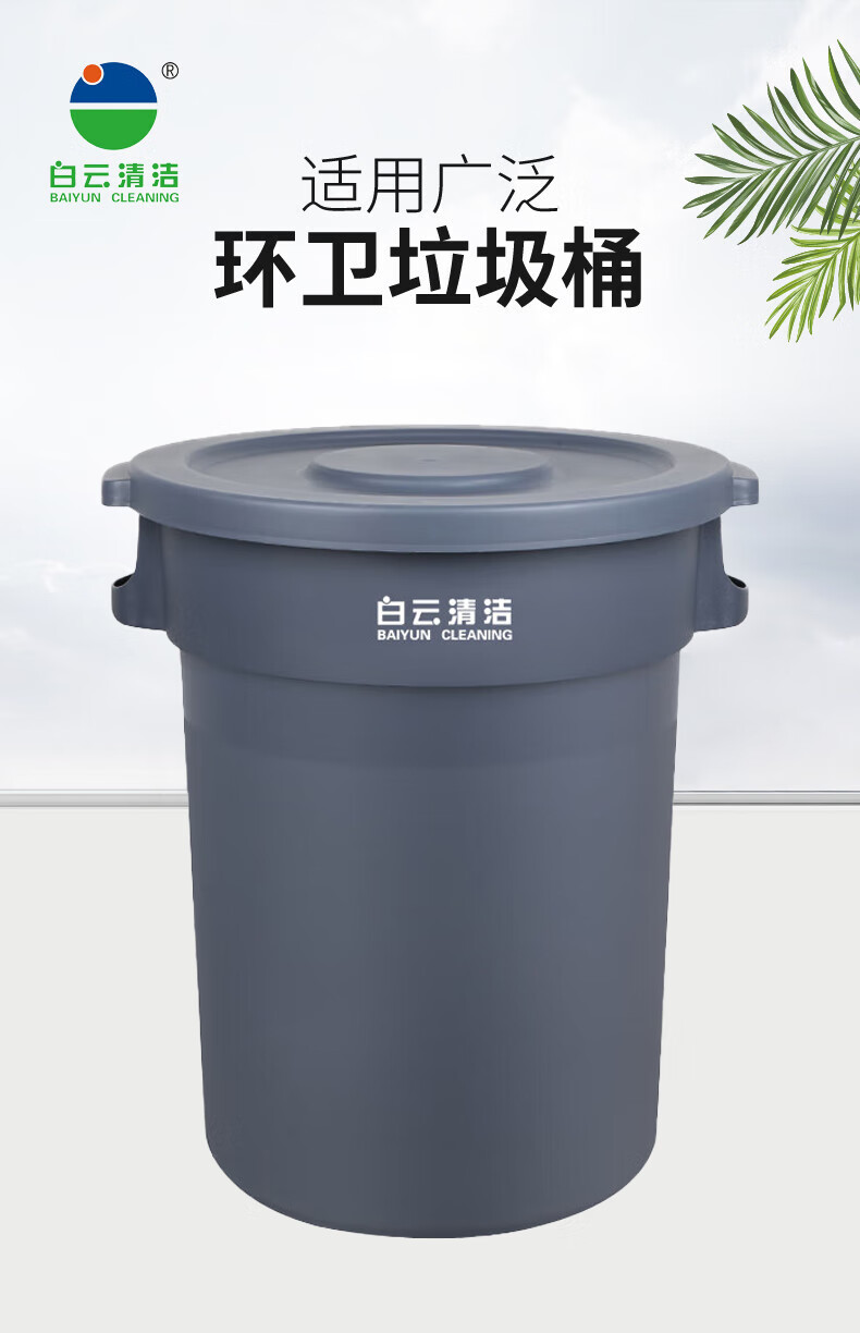 白云清洁 圆形带盖垃圾桶 AF07510 80L 灰色 1个