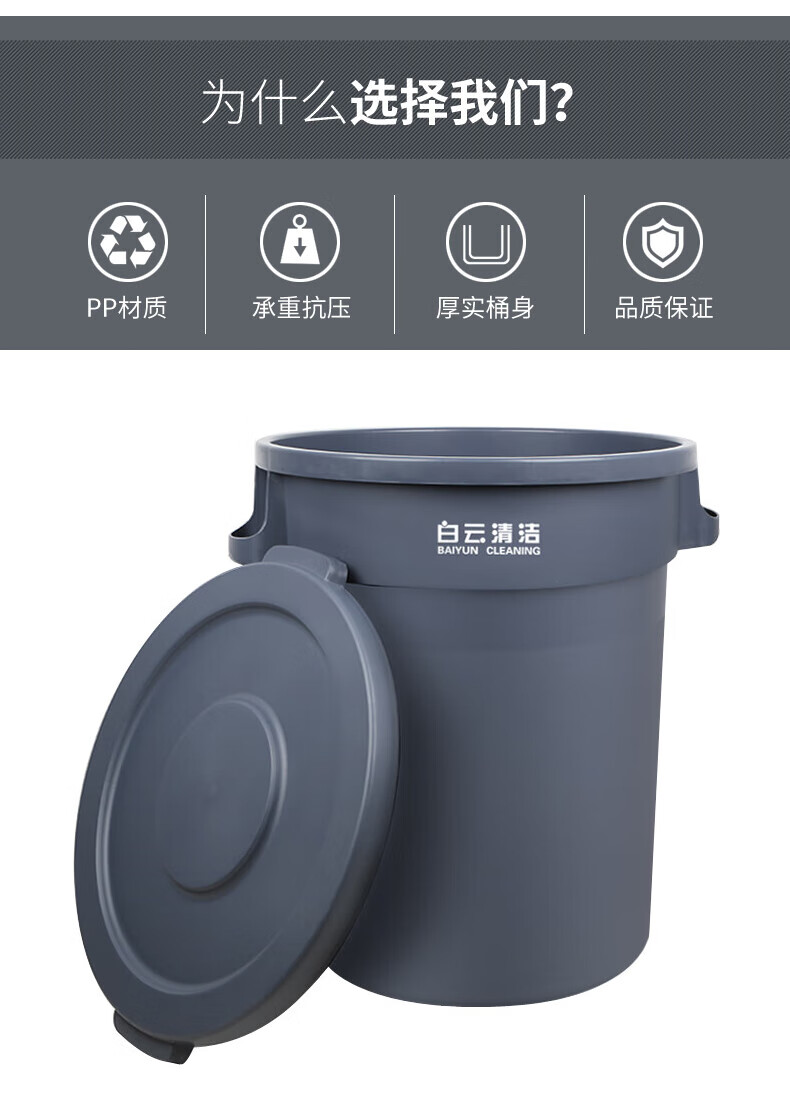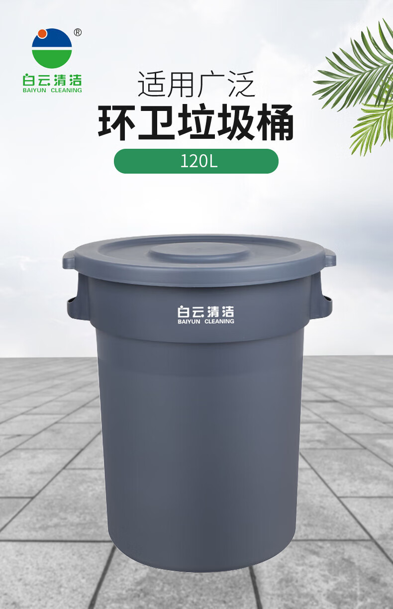 白云清洁 圆形带盖垃圾桶 AF07509 120L 灰色 1个
