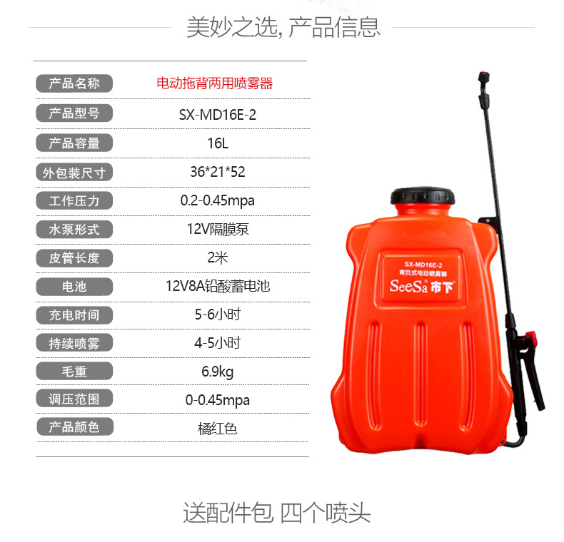市下 SX-MD16E-2 背负式高压农用喷药机电动喷雾器 16L标配+全铜伸缩杆+全铜开关