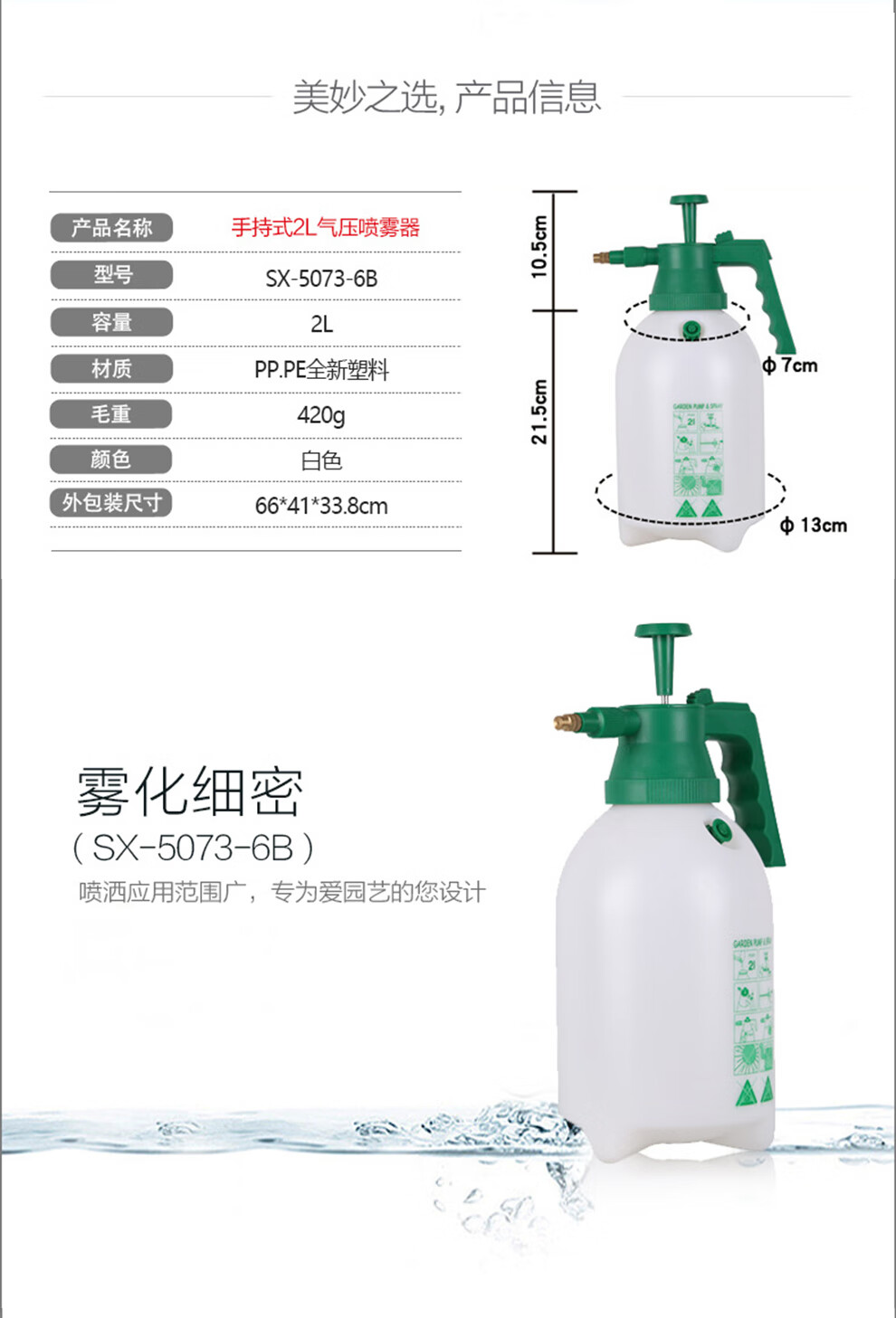 市下SX-5073-6B 喷壶园林园艺手动塑料喷水壶带气压阀手压喷雾器 2L