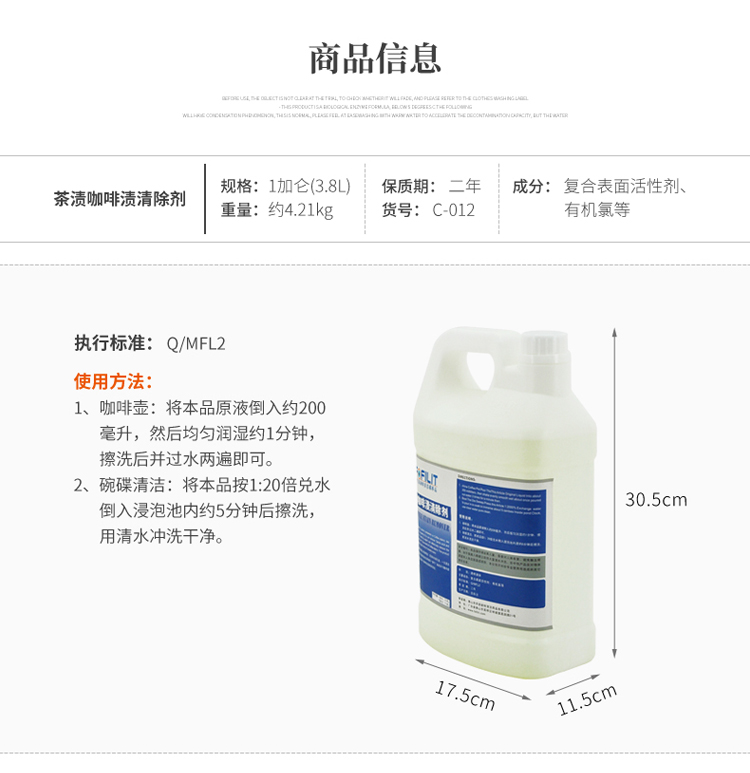 芳菲丽特(FOFILIT)C-012 茶渍咖啡渍清除剂 3.8L*4桶