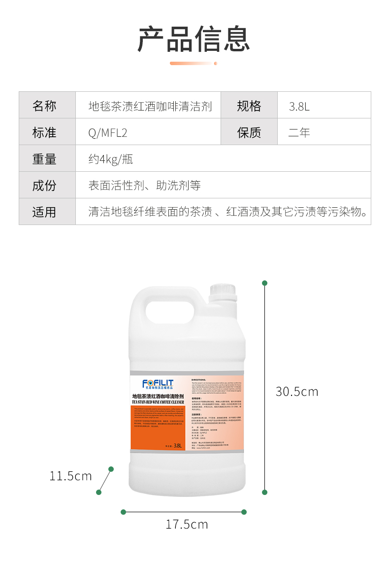 芳菲丽特(FOFILIT)LDQ0020 地毯茶渍红酒咖啡清洁剂 3.78L/桶