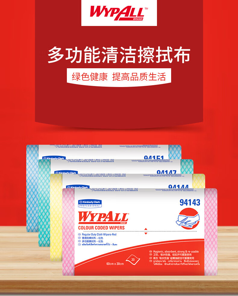 劲拭(Wypall)金佰利擦拭布彩色清洁擦拭布无纺布吸水洗碗布 红色 20片/包 12包/箱 94143