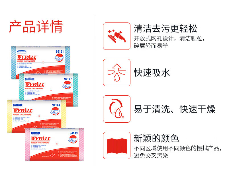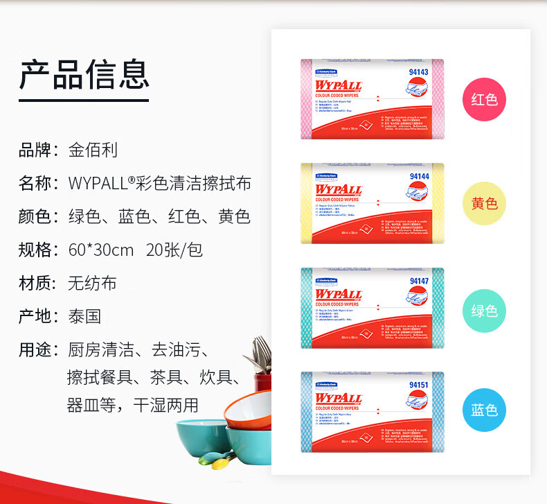 劲拭(Wypall)金佰利擦拭布彩色清洁擦拭布无纺布吸水洗碗布 黄色 20片/包 12包/箱 94144