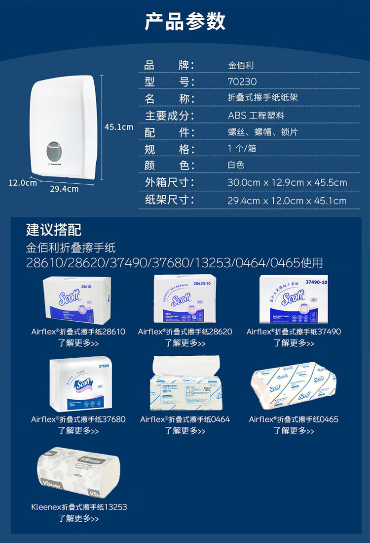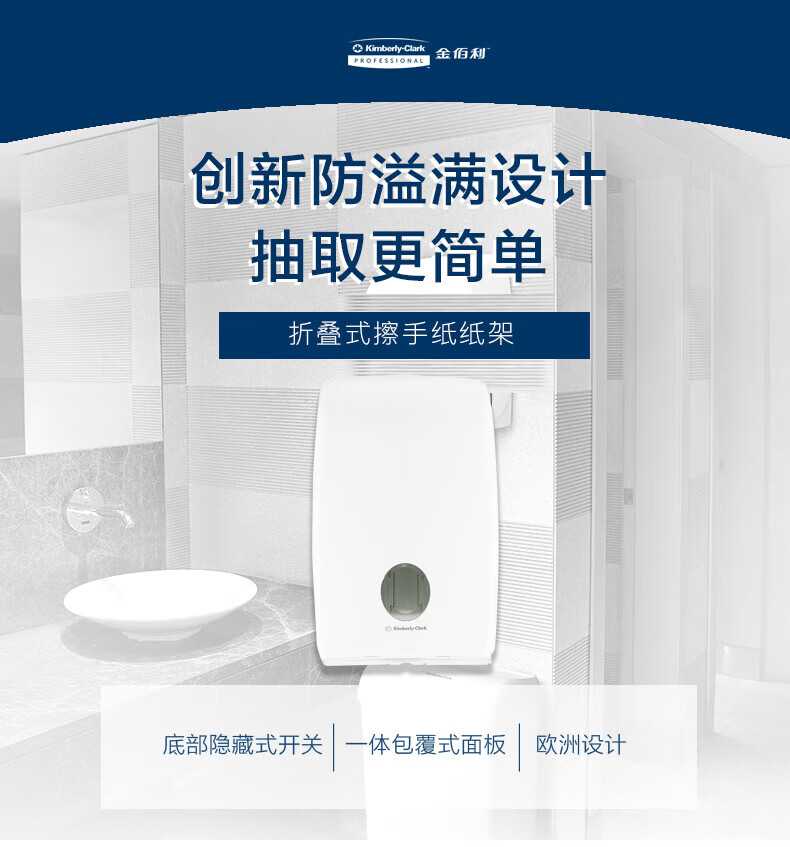 金佰利(Kimberly-Clark)折叠擦手纸纸架酒店商场公共厕所洗手间商用纸巾盒 1 个/箱 70230