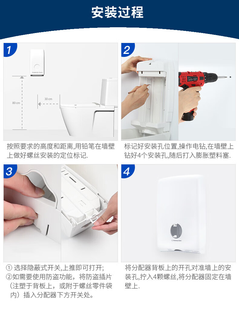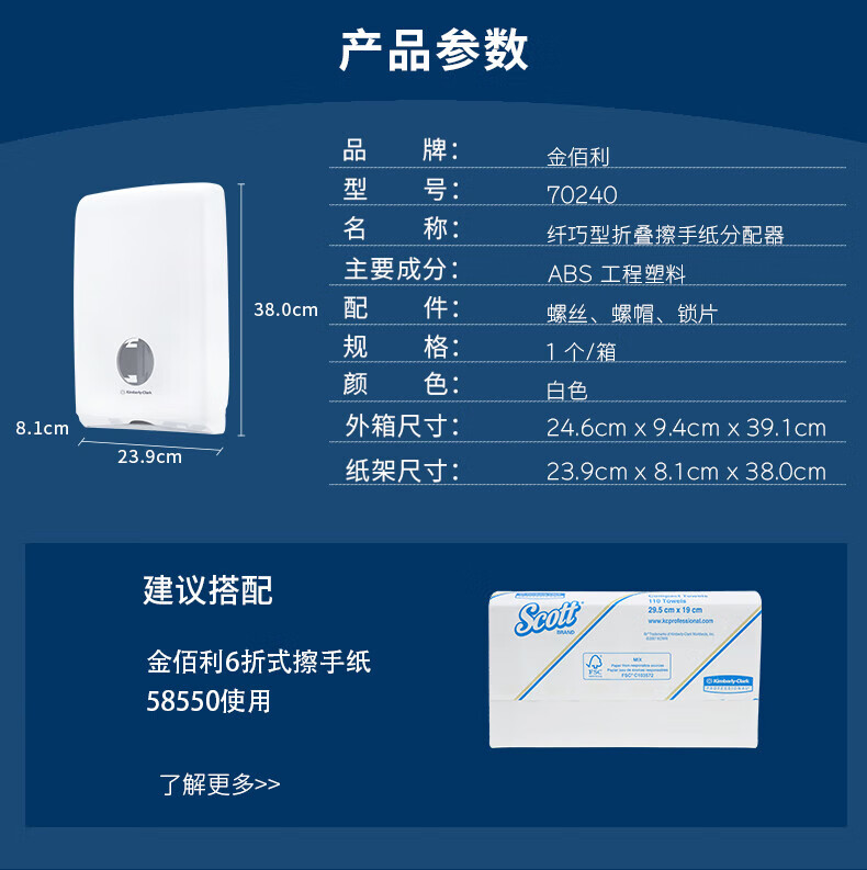 金佰利(Kimberly-Clark)纤巧型折叠擦手纸纸架酒店洗手间商用纸巾盒 1个/箱 70240