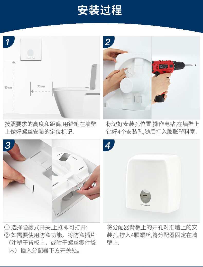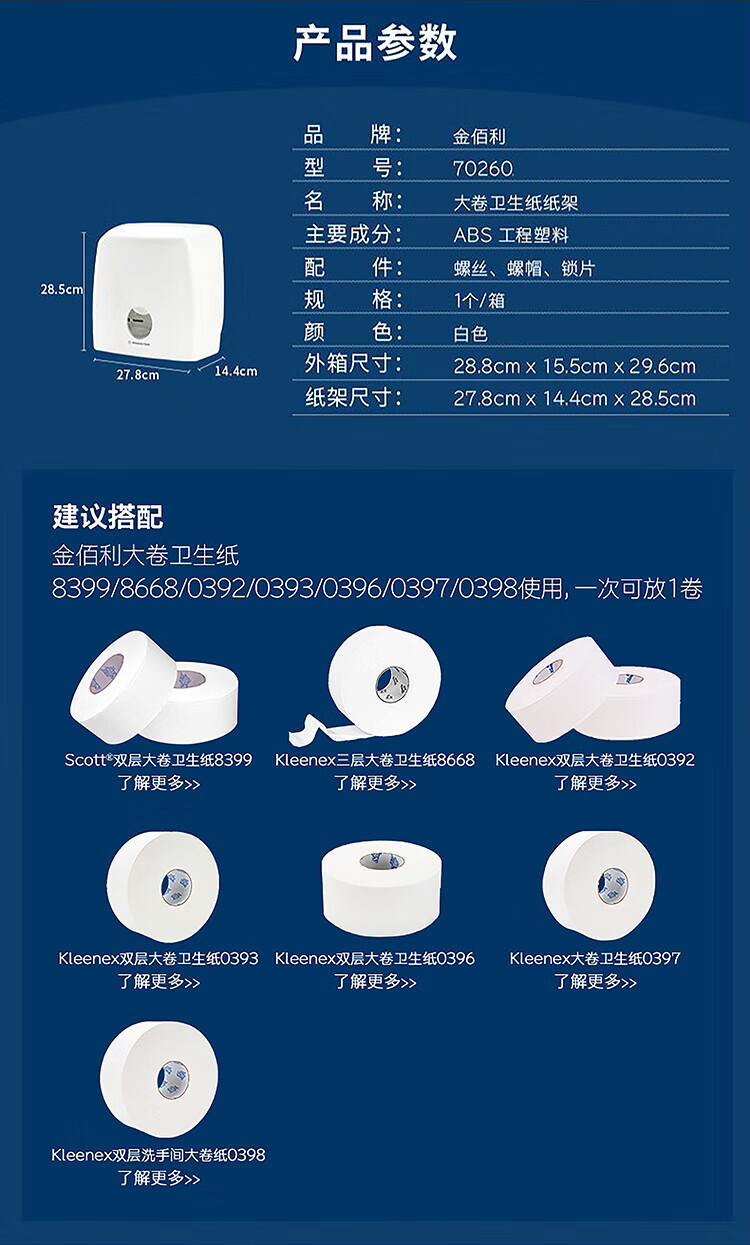 金佰利(Kimberly-Clark)大卷卫生纸架厕纸架纸巾盒商场厕所公共洗手间纸巾分配器盒子 白色 1个/箱 70260