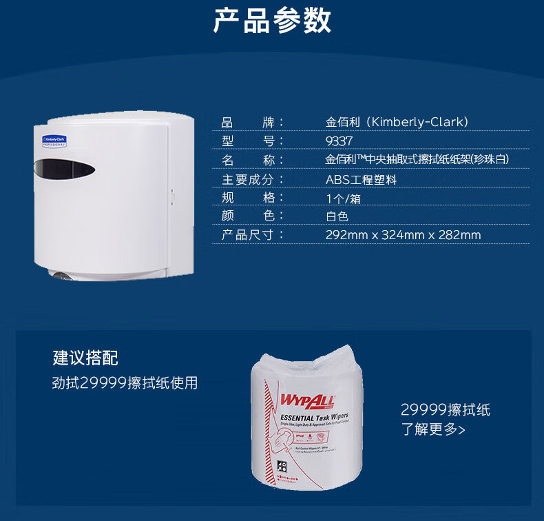 金佰利(Kimberly-Clark)中央抽取式擦拭纸纸架擦手纸分配器抽纸纸巾盒 1个/箱 9337