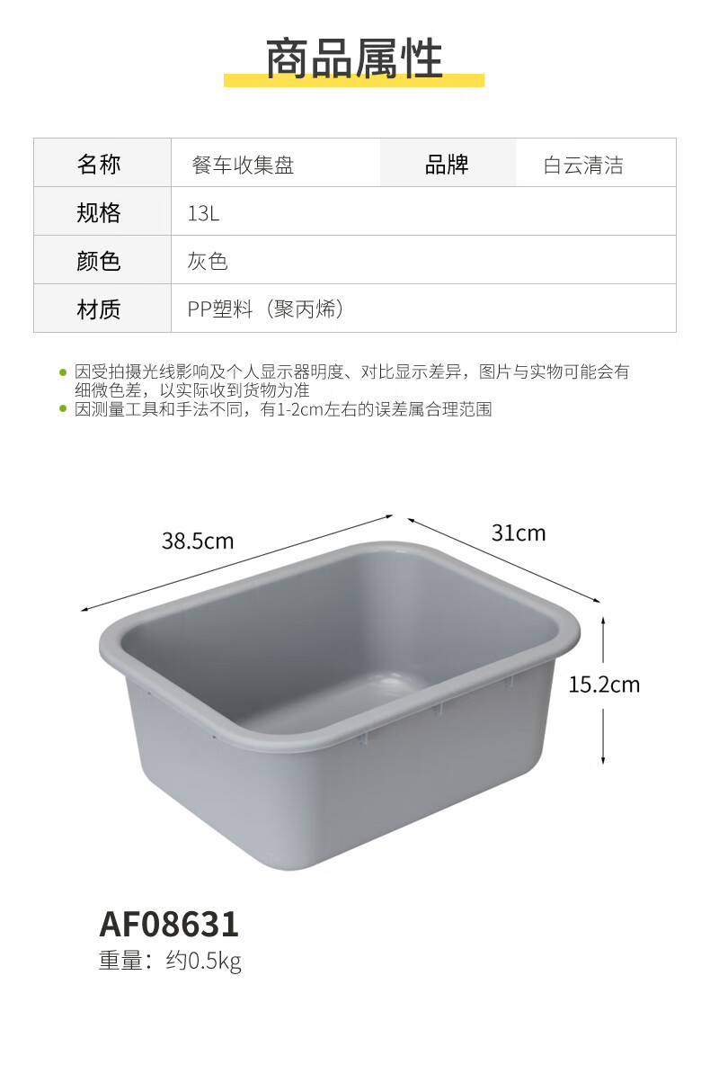 白云清洁 AF08631 收餐盆安检盆酒店餐厅餐具收纳盒塑料盆 13L