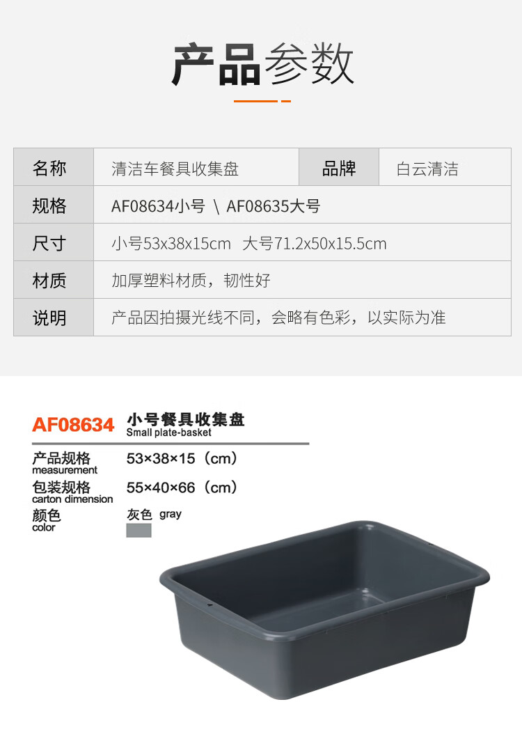 白云清洁 AF08635 塑料盆加厚酒店饭店收集框餐具收集盘清洁盆 大号