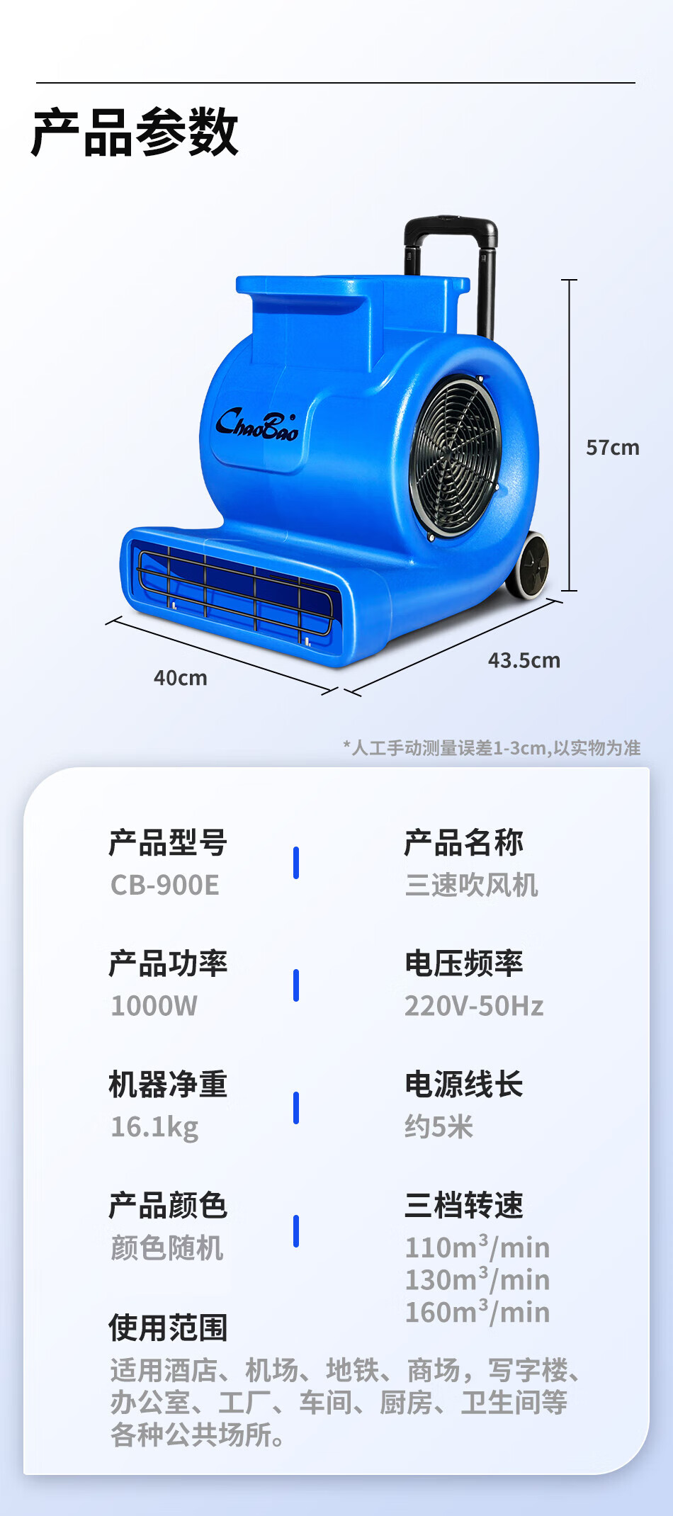 超宝 CB-900E 三速吹干机 1000W 带拉杆 颜色随机 1台