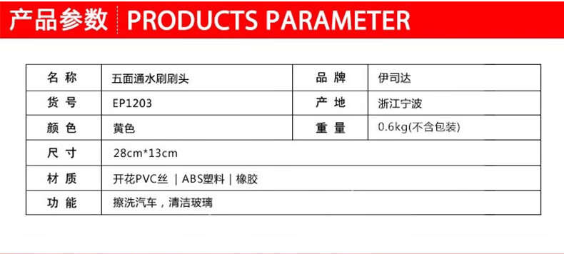 伊司达 EP1203 长柄洗车刷配件五面通水刷刷头